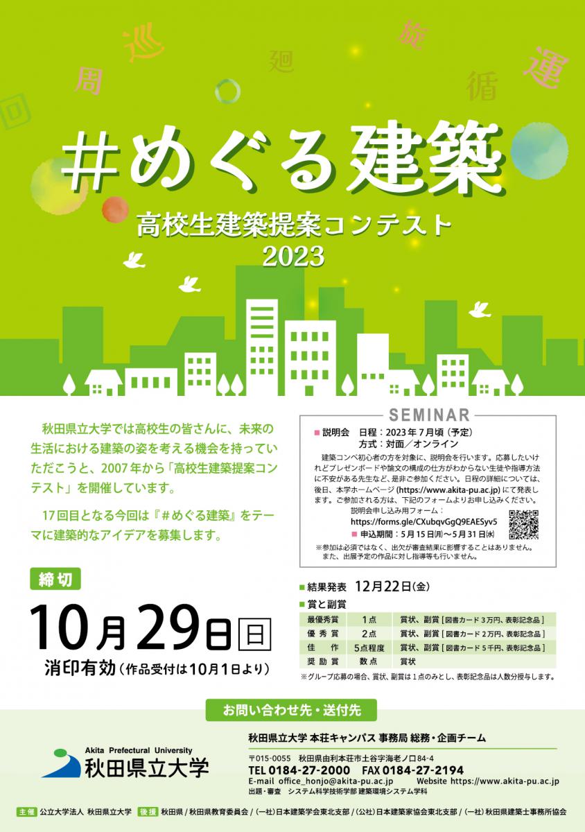 秋田県立大学では、高校生の皆さんに未来の生活における建築の姿を考える機会を持っていただこうと、2007年から高校生対象の建築提案コンテストを実施しています。