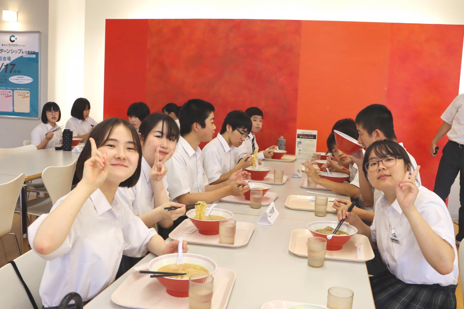 カフェテリアに移動し、普段、県大生や教職員が食べている”学食”を体験いただきました。