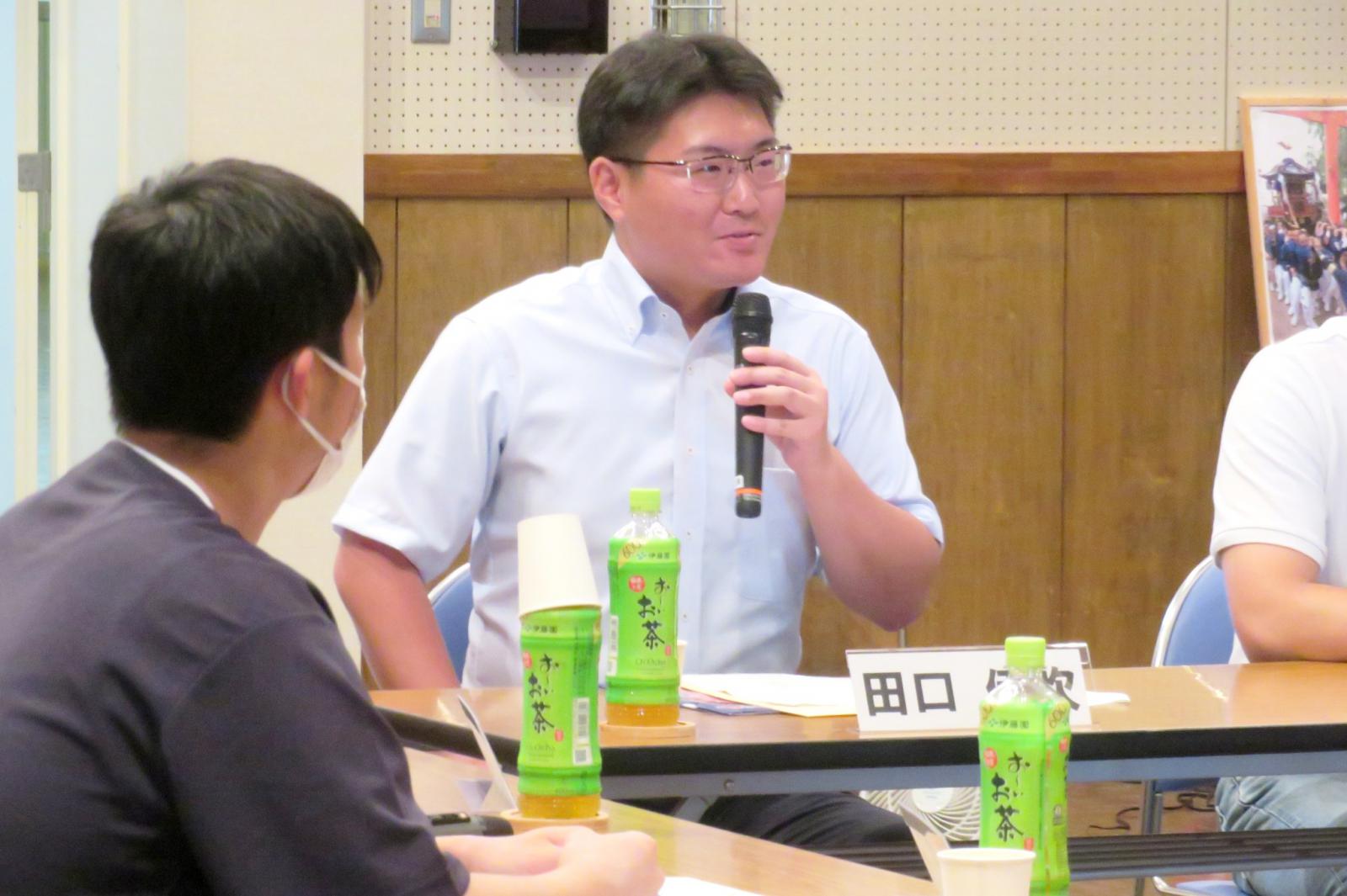 7月11日(火)に、秋田公立美術大学 アトリエももさだ 多目的ホールにて「令和5年度 知事と県民の意見交換会」が開催され、本学からは、システム科学技術学部機械工学科4年の田口伊吹さんが参加しました。「私が就職先を選ぶ際のポイントはこれ!~学生から選ばれる職場づくりのためには~」をテーマに、県内6つの大学から6名の学生が参加し、佐竹敬久秋田県知事と意見交換を行いました。