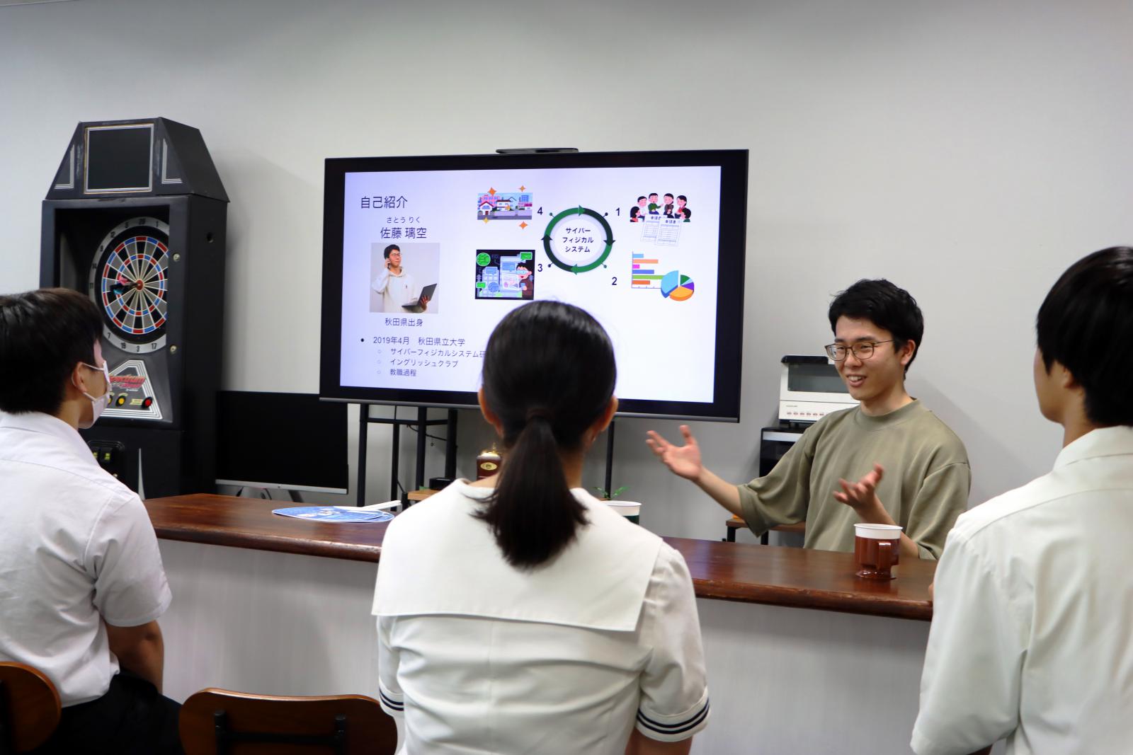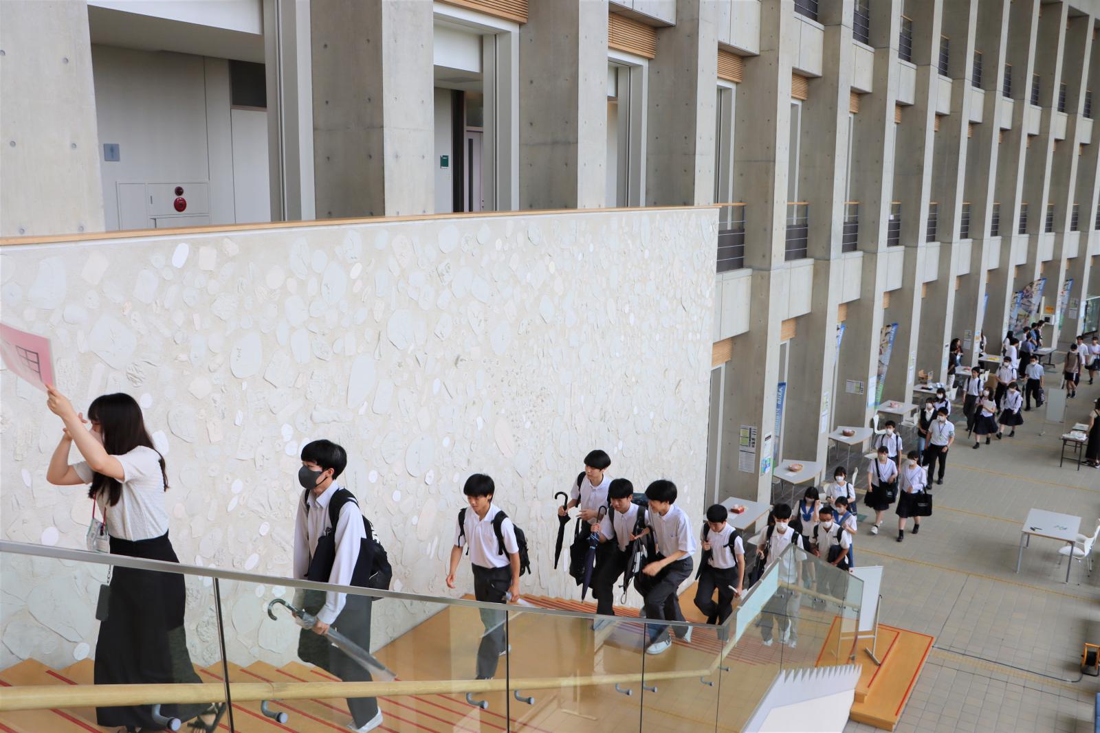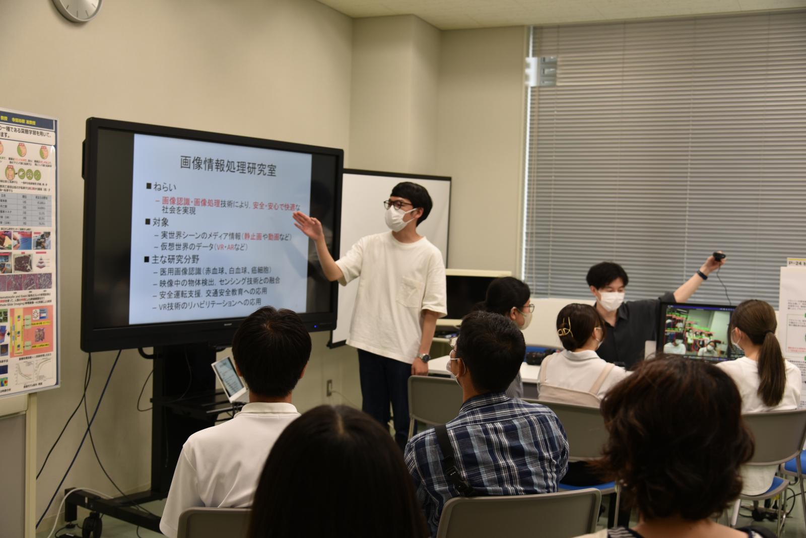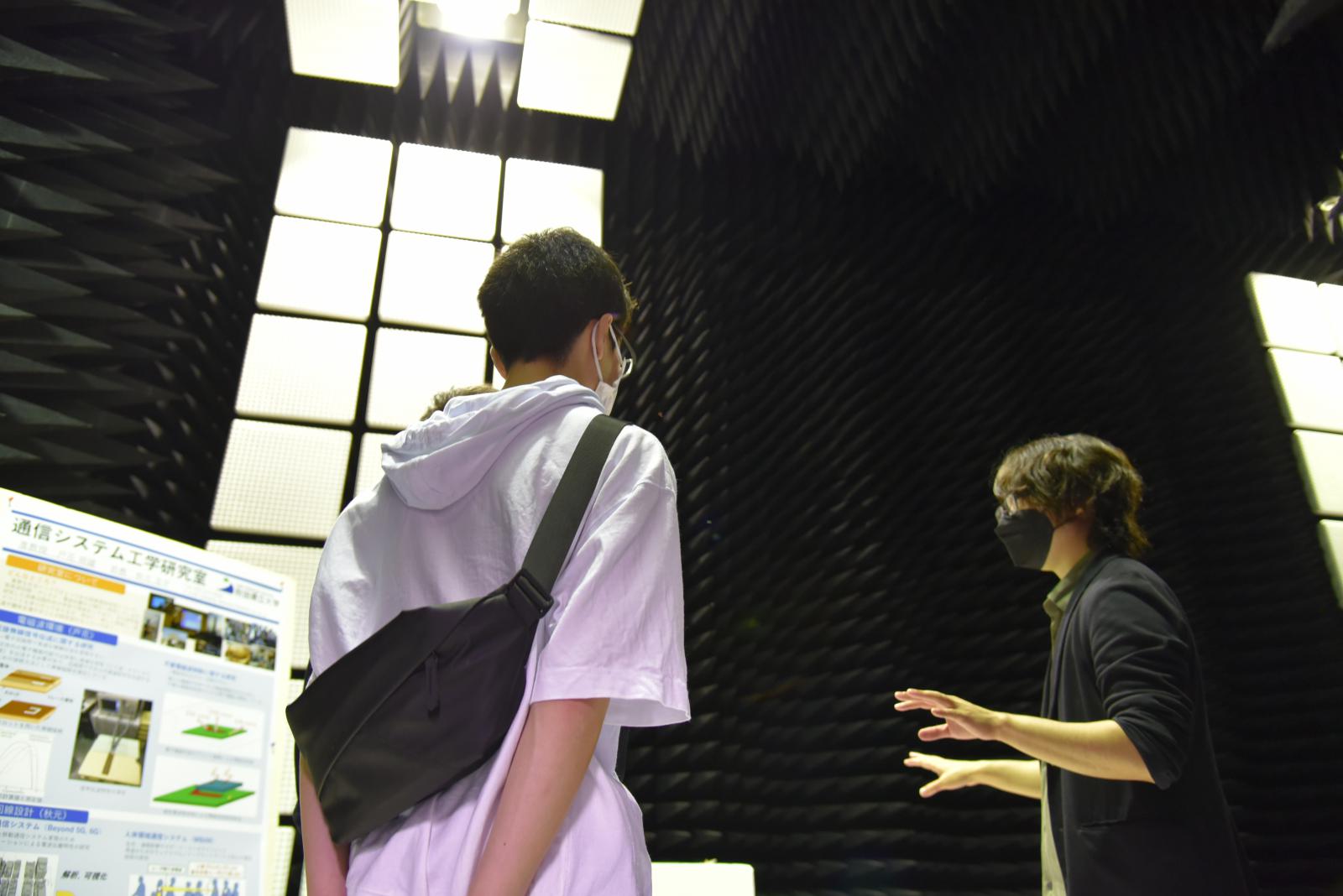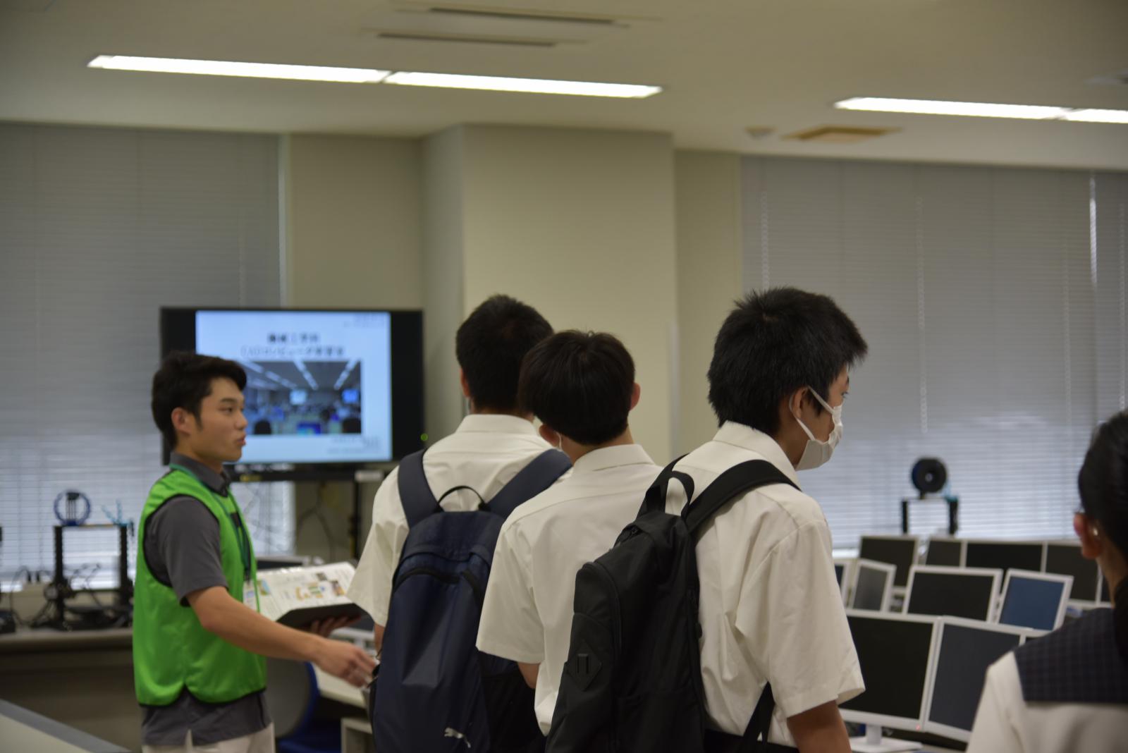 本荘キャンパスには、機械工学科、知能メカトロニクス学科、情報工学科、建築環境システム学科、経営システム工学科の5学科があります。大学構内を自由に行き来する機会はめったにありませんので、みなさん広々とした構内を探索しながら、興味のある研究室を訪れている様子でした。