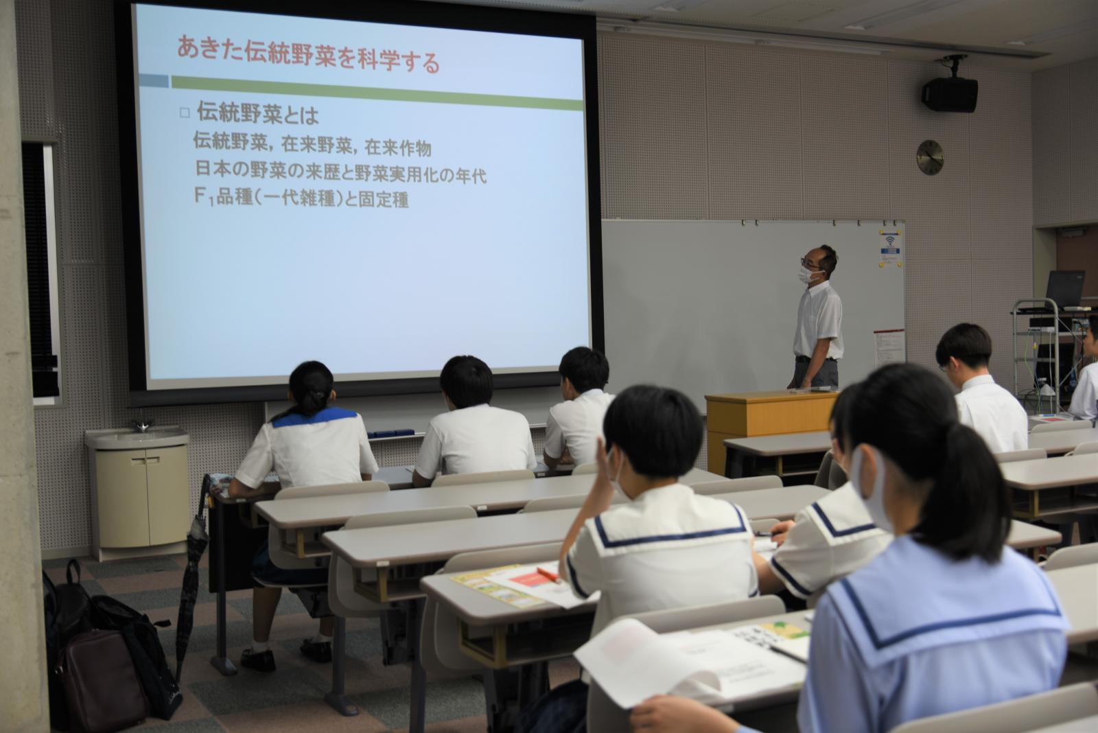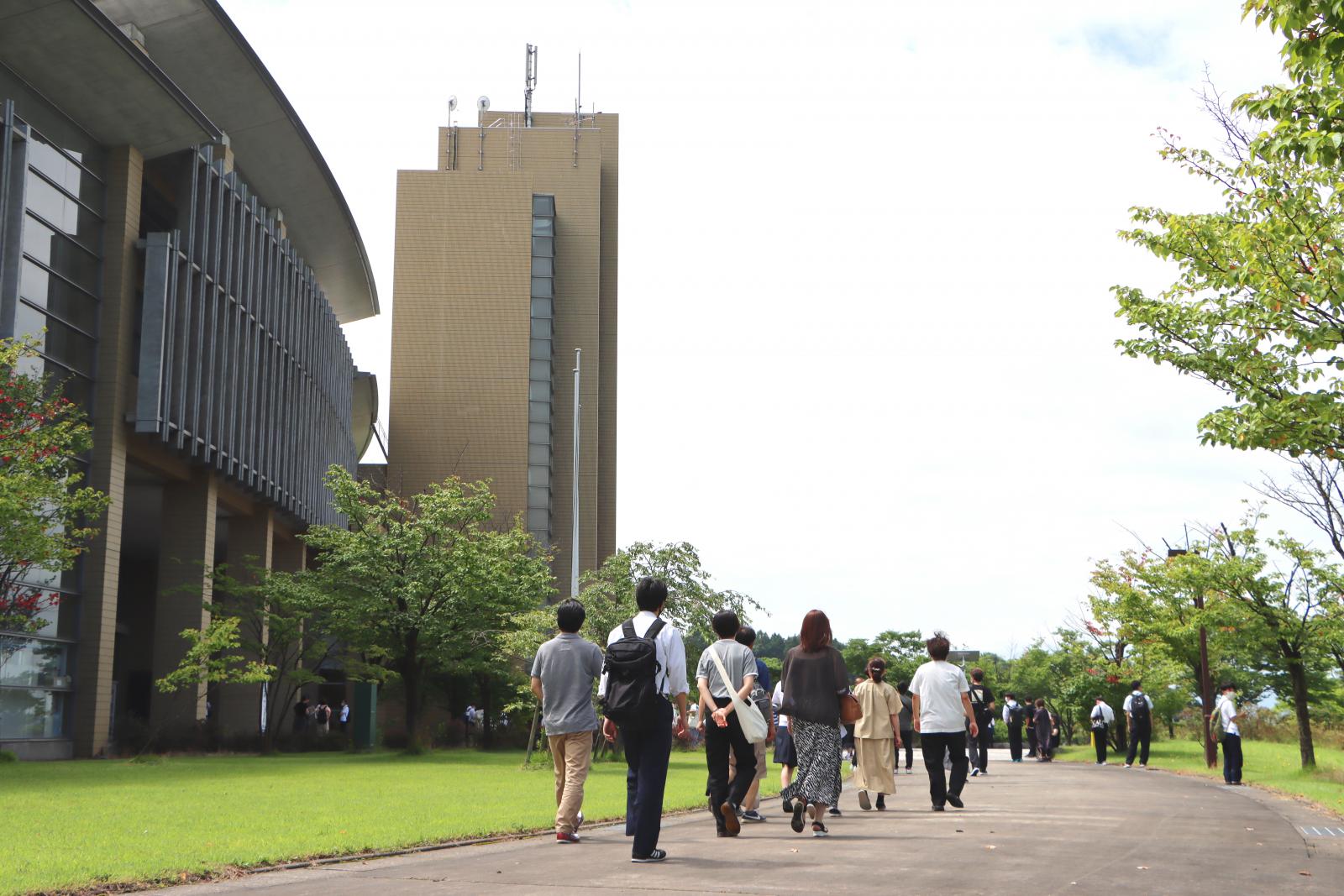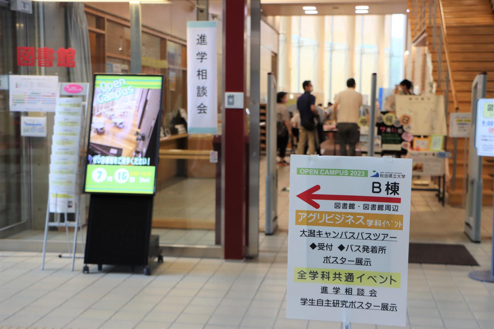 秋田キャンパスには応用生物科学科、生物環境科学科、生物生産科学科の3学科があり、大潟キャンパスにはアグリビジネス学科があります。講堂での全体説明終了後に、学生の誘導で秋田キャンパス内の各イベント会場へと向かいました。