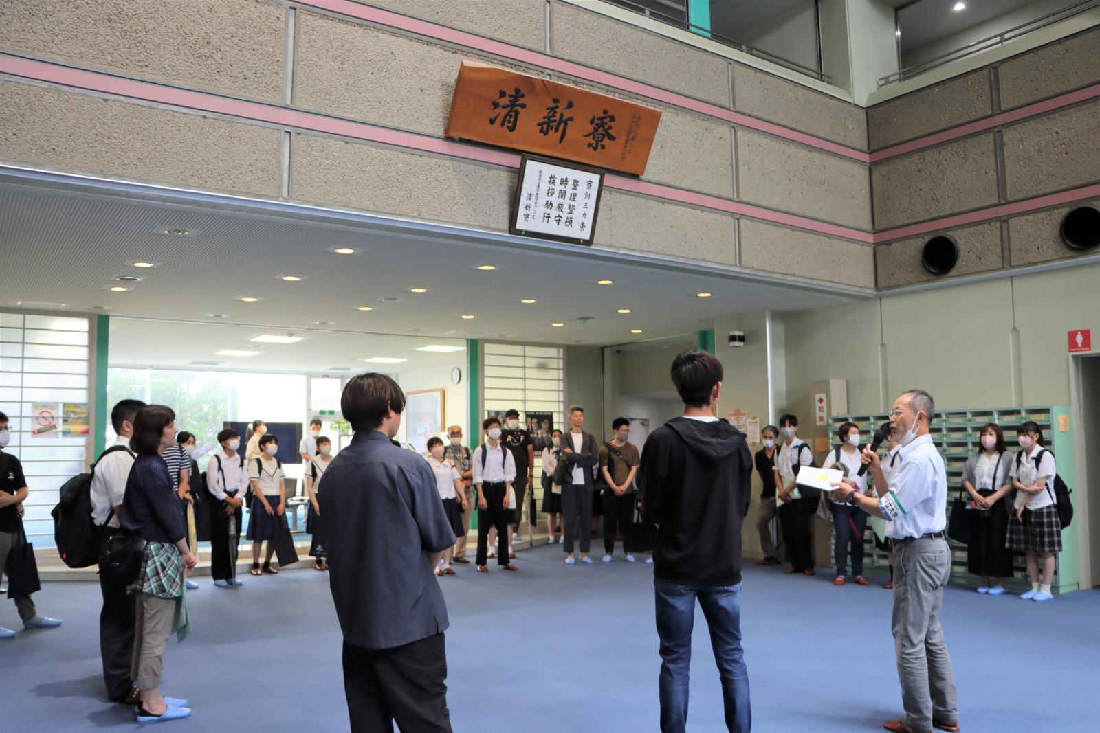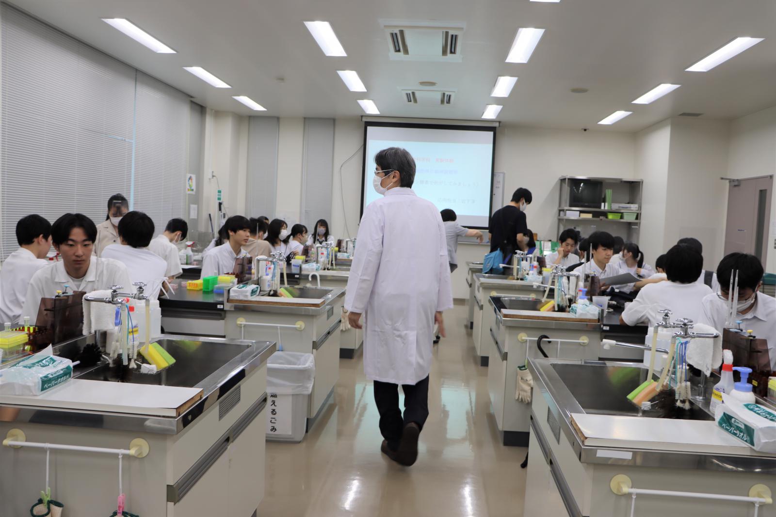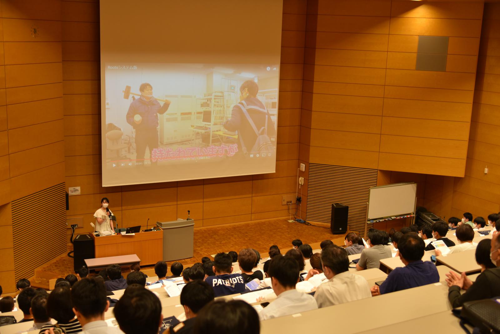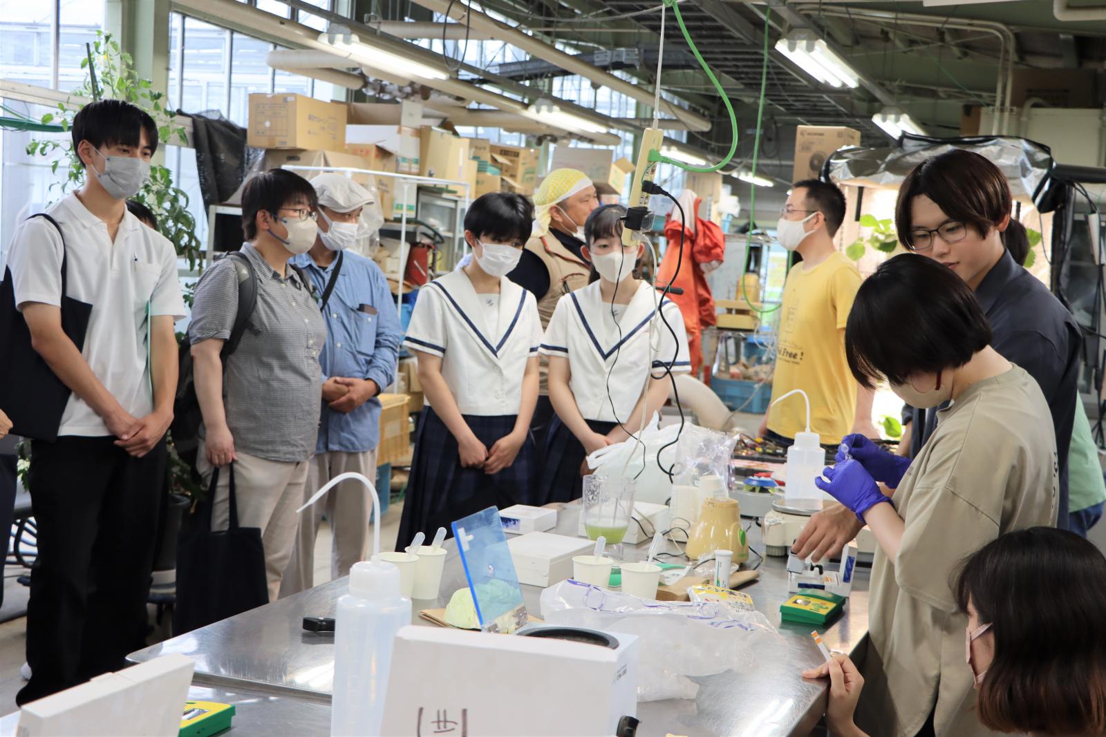 秋田キャンパスには応用生物科学科、生物環境科学科、生物生産科学科の3学科があり、大潟キャンパスにはアグリビジネス学科があります。講堂での全体説明終了後に、学生の誘導で秋田キャンパス内の各イベント会場へと向かいました。