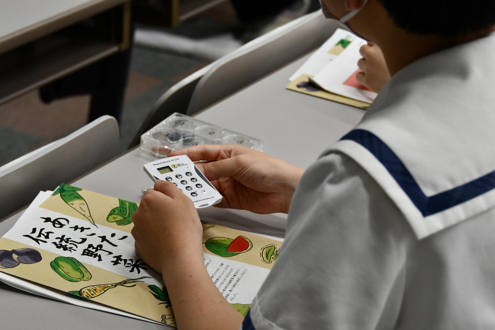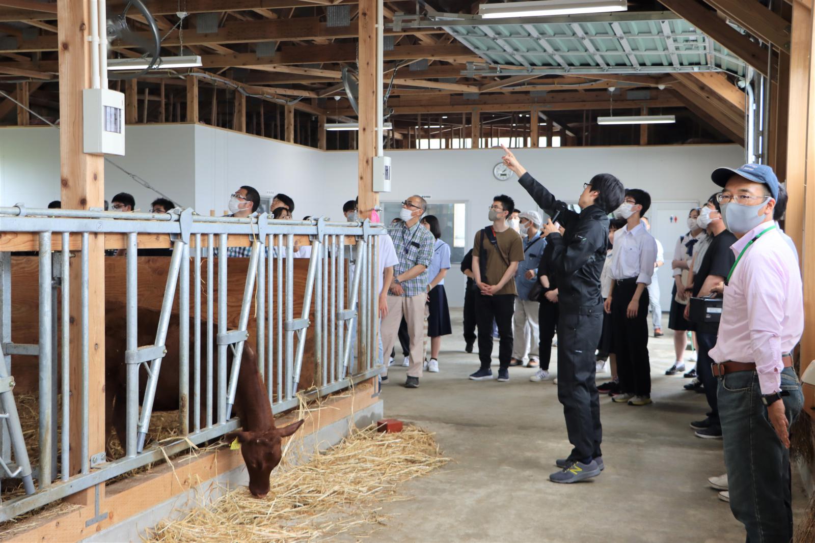 昼食後は、学生寮から車で3分のところにあるアグリイノベーション教育研究センター(AIC)へと移動し、牛舎見学や、計測器を用いたトマトの成分計測を体験していただきました。