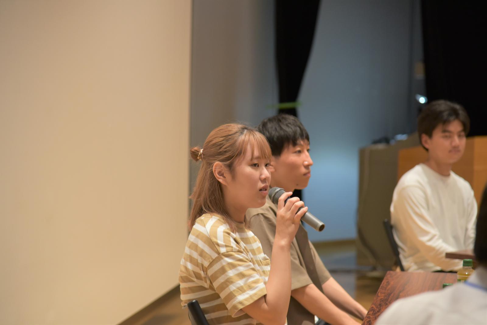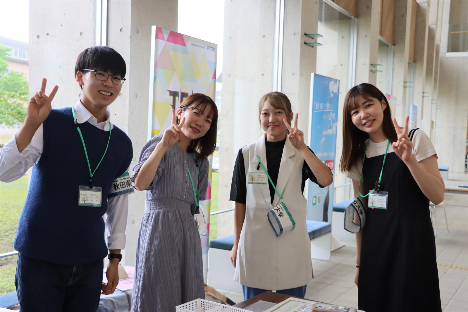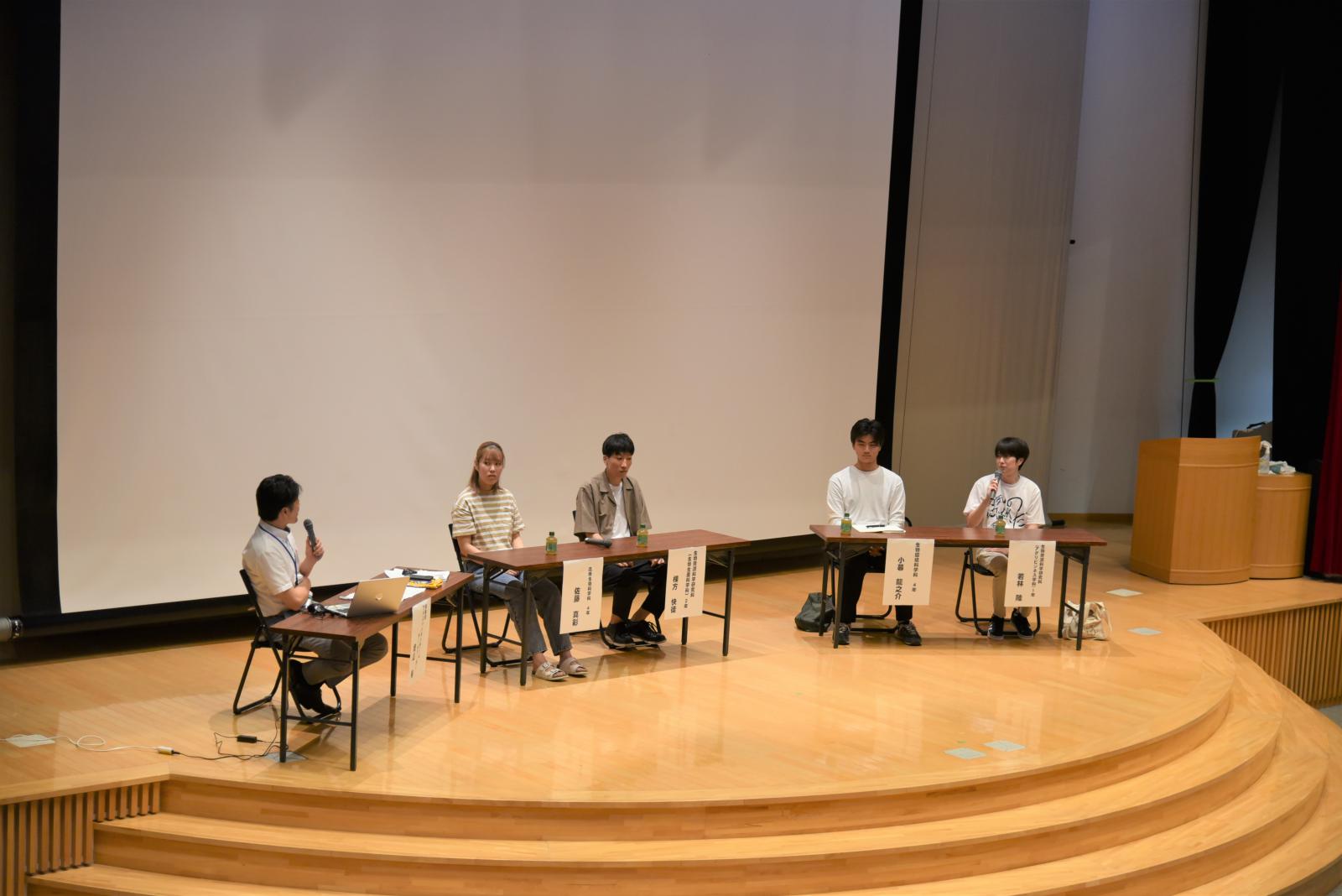 また、全学科共通のイベントでは進学相談会や学生によるキャンパスツアーを随時行いました。保護者・進路検討中の学生向けイベントでは、講堂でパネルディスカッションを実施しました。学科の異なる4名の本学学生から「秋田県立大学を選んだ決め手」や「進路選択で悩んだこと」「大学での過ごし方」などについてトークを行い、学生のリアルな声を届けることができたのではないでしょうか。