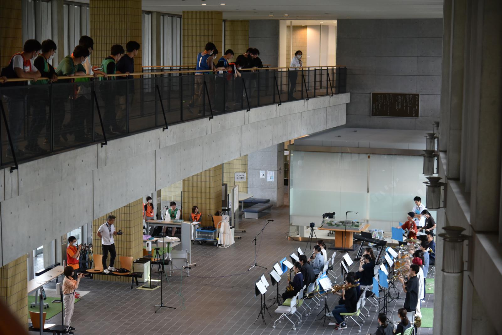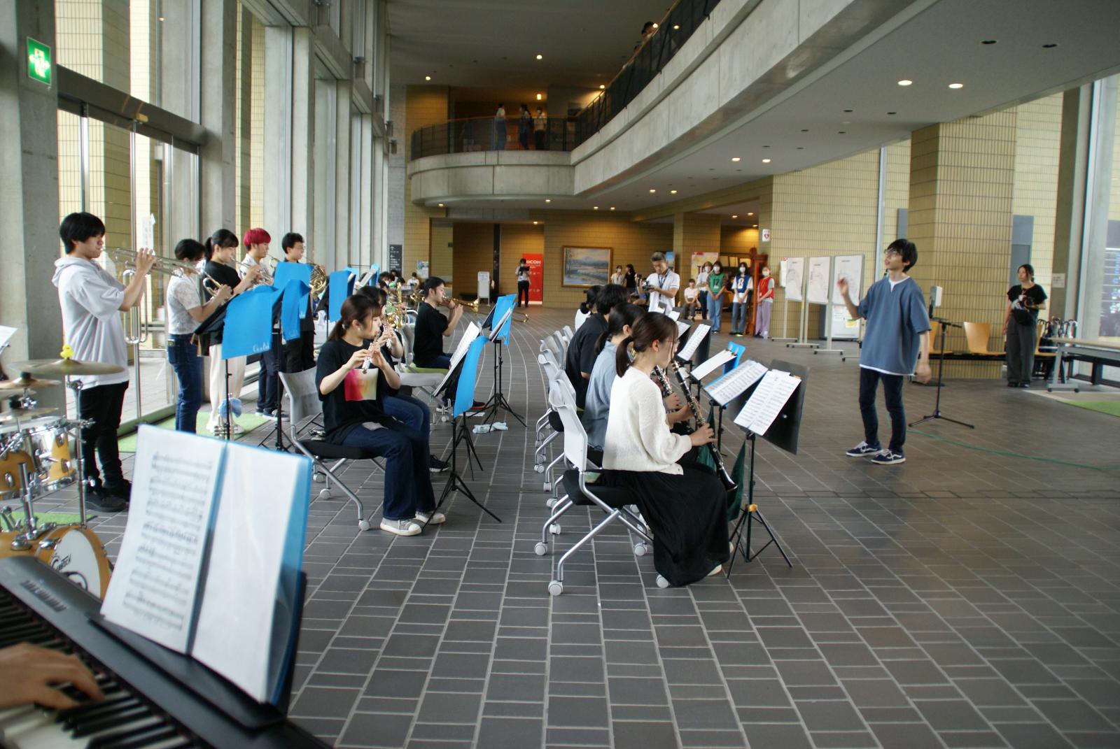 オープンキャンパスの締めくくりは、JAZZバンドサークルによる演奏。心地のいい音色がエントランスに響きました。