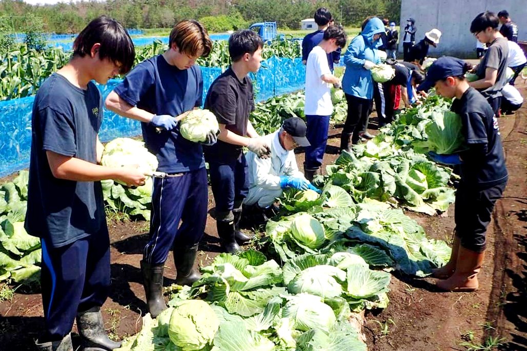 学生が栽培・収穫したキャベツを寄贈しました
