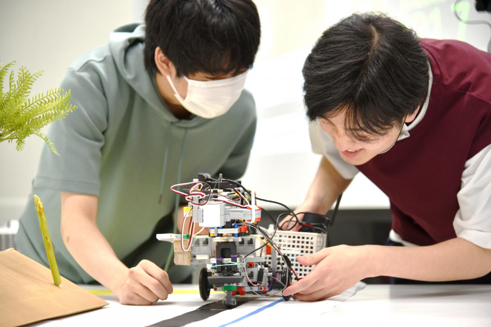 メカトロニクス学科では、機械工学と電気電子工学及び制御工学を中心とした専門科目や、システム思考に基づいてこれらの技術を組み合わせたメカトロニクスに関する科目について、プロジェクト型実習を中心として少人数教育を実施し、産業分野で応用できる問題発見・解決力を備えた人材を育てることを目標にしています。人工知能を巧みに駆使し総合力で優勝!!