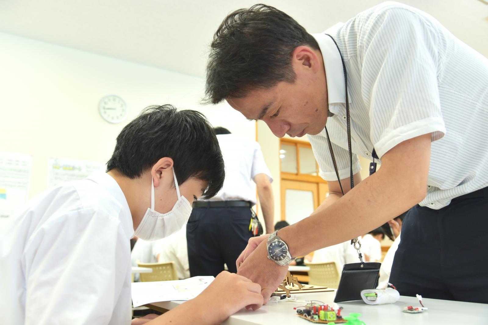 令和5年8月1日(火)、横手市立十文字小学校を会場に、横手市教育委員会が主催する「第14回横手市中学校ものづくり交流会」が開催され、当日は横手市内6校の中学校から13名の中学生が参加しました。
