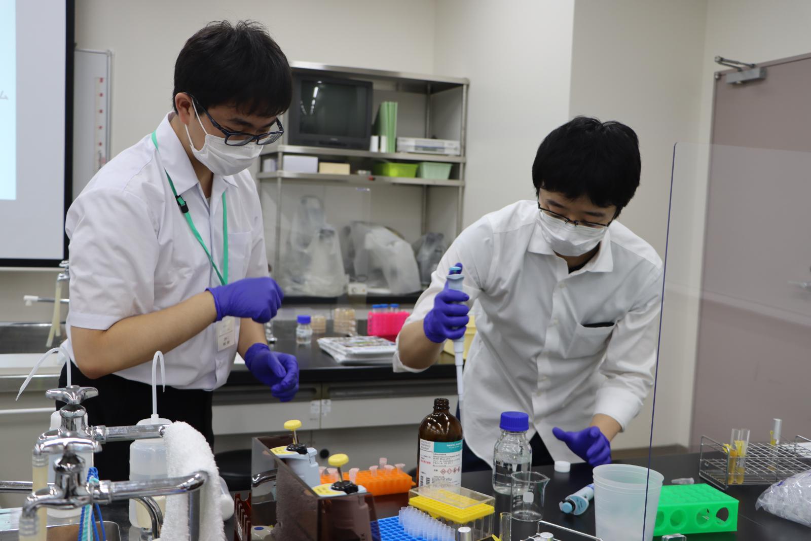 8月8日(火)秋田キャンパスにおいて、県内高校生を対象に「ハイレベル講座」を開催しました。生物コース「野生で見つけた酵母の正体を突き止めよう!」と化学コース「植物由来エキスに含まれる抗酸化物質を分析してみよう!」の2コースを設け、生物資源に関して興味・関心あふれる高校生12名(生物7名、化学5名)に受講して頂きました。高校生の皆さんは、大学生さながら各実験室で高度な内容の講義と実験を体験しました。生物と化学の奥深さを知ると同時に、より生物資源の世界に興味を深める機会となったと思います。