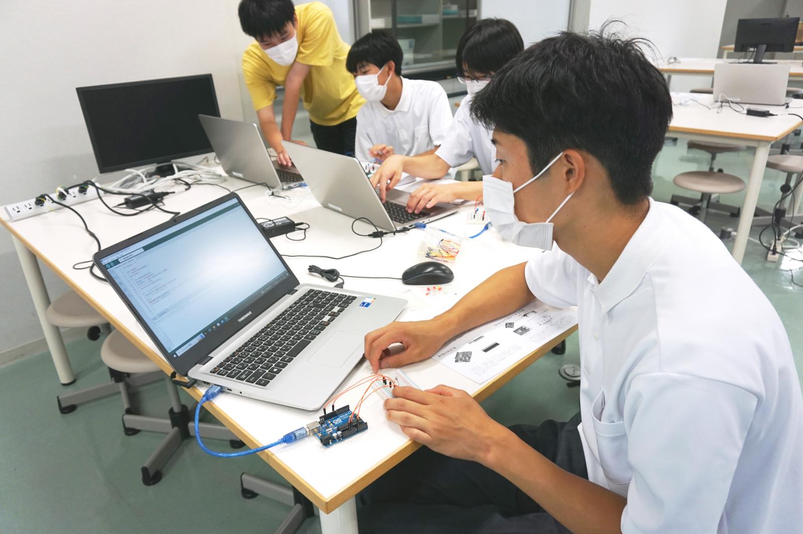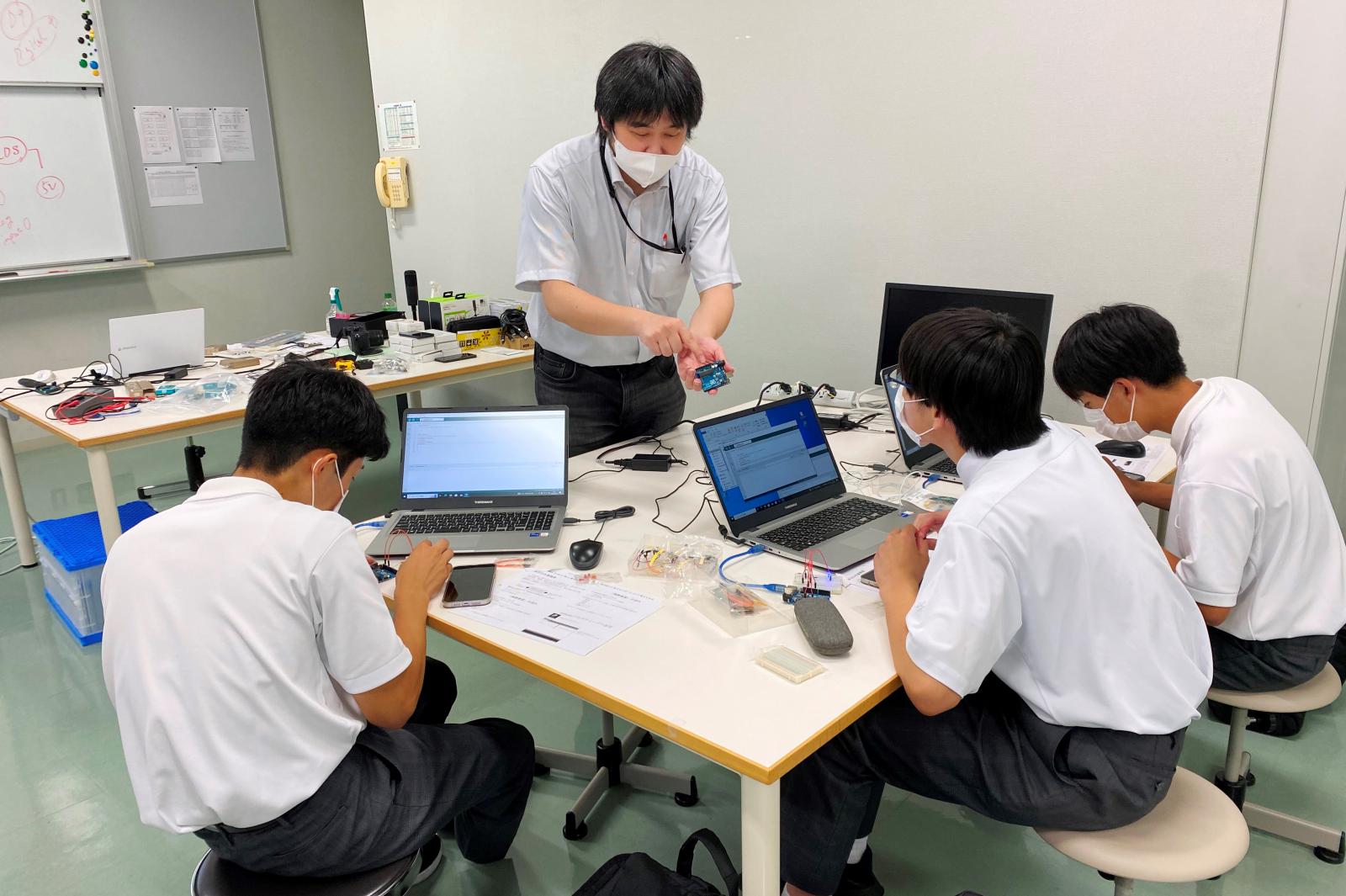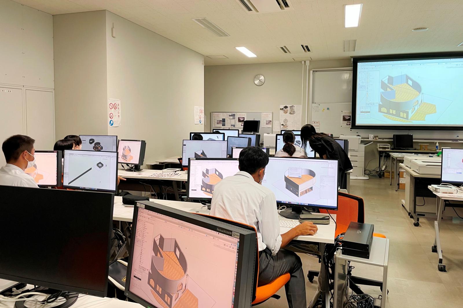 1年生122名が来学し、12講座に分かれて学科の特長や研究分野に関連した講座を受講しました。マイコンと様々なセンサーを組み合わせて温度や湿度を計測したり、BIMという設計技術を体験したり、VRの中に入ってみたりと大学ならではの演習・実験を行いました。初めて使用する機器や大学の実験室・研究室での実施にみなさん目を輝かせながら取り組みました。慣れない操作や細かい作業に苦戦する様子もありましたが、TA学生のサポートを受け、仲間と相談し最後まで意欲的に活動しました。