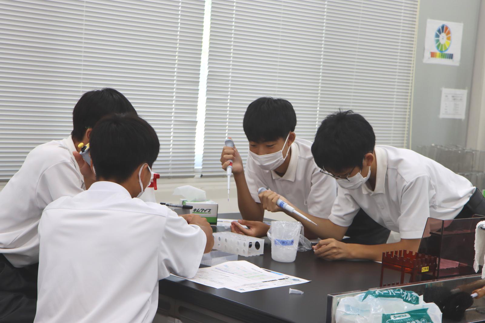 9月1日(金)、秋田県立秋田中央高等学校の1年生を対象とした高大接続事業「秋田県立大学実験実習」が、秋田キャンパスおよび本荘キャンパスで行われました。同事業は、秋田県立秋田中央高等学校のSSH(スーパーサイエンスハイスクール)事業として、高校と大学の垣根を越えた教育により、科学的基礎力(自然事象について目的を持って観察・実験する力)、および継続的探究力(実験結果について科学的根拠に基づいて考察する力)を育成し、科学技術への興味・関心を高めることを目的に実施しております。