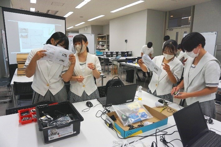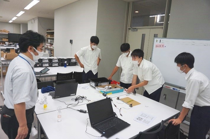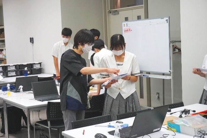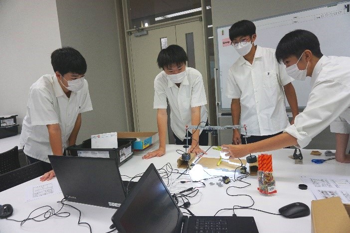 知能メカトロニクス学科 齋藤 敬 教授のコースでは農業用ロボットの作成に挑戦しました。3~4人のグループに分かれ、先生や学生からアドバイスをもらいながらロボットを作りに挑戦しました。最後にはロボットをどれだけ正確に動かせるか競い合い、最後まで真剣に取り組んでいました。.jpg)