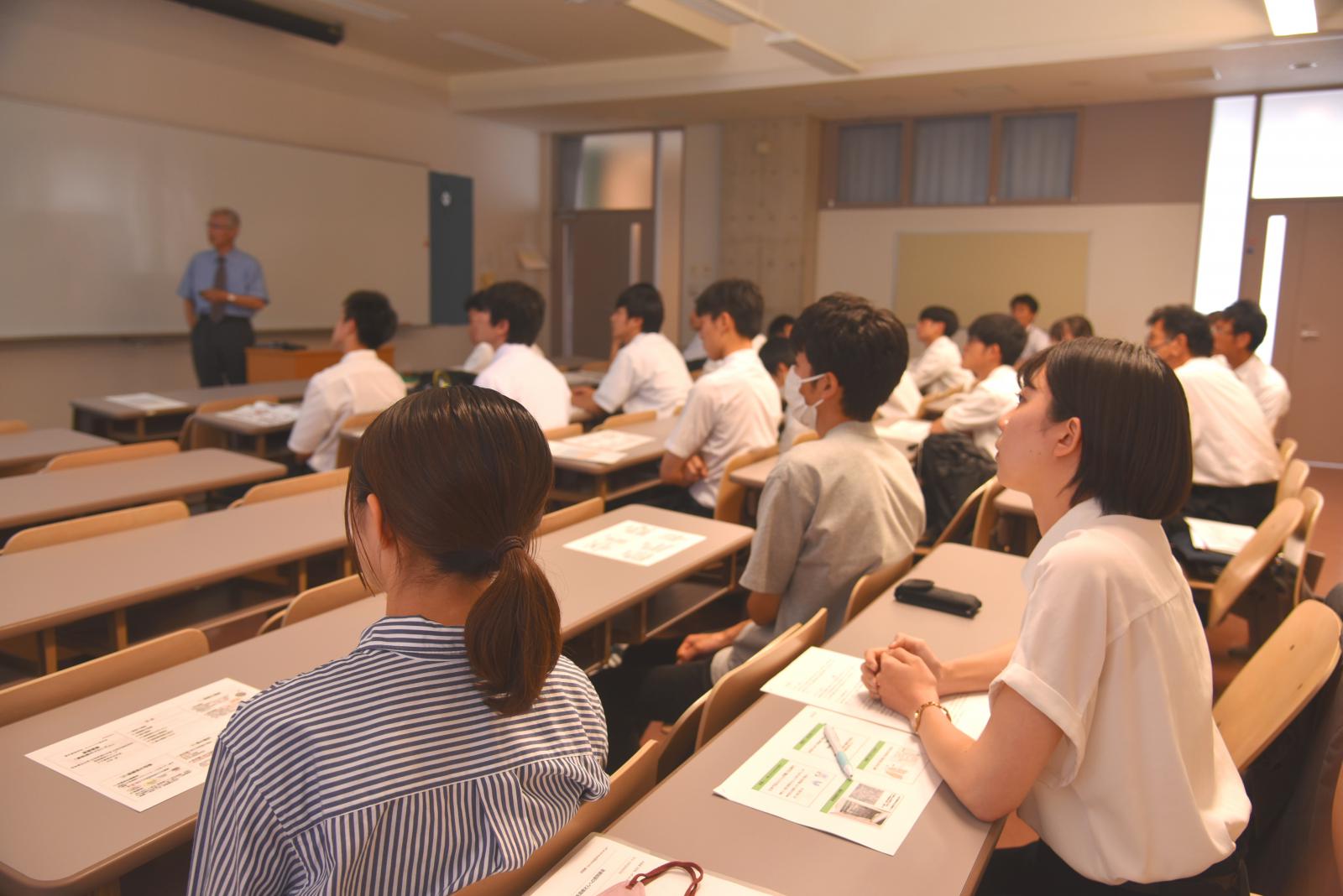 機械工学科の伊藤伸准教授が「機械工学とは・・・」というテーマで機械工学について具体的にどのようなことが学べるのか、高校での学びや身近にあるものを例にあげながら、講義を行いました。大学の学びに触れ、高校生の皆さんも興味を持ちながら熱心に取り組んでいました。.jpg)