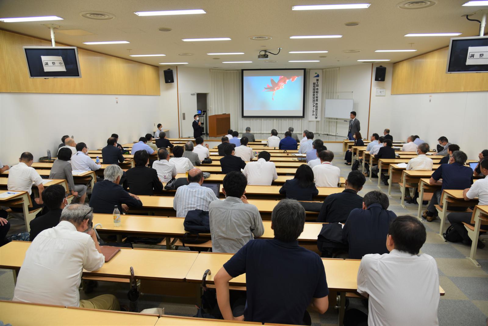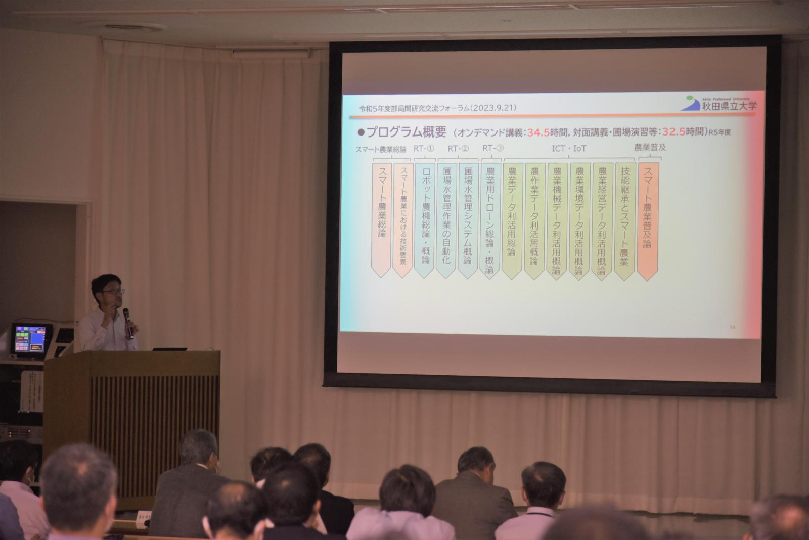 今回は、アグリイノベーション教育研究センター、情報工学科、木材高度加工研究所、本荘キャンパス地域連携・研究推進センター、生産科学科、総合科学教育センター、アグリビジネス学科の教員7名が研究紹介を行い、学内外を含めた約100名が聴講しました。