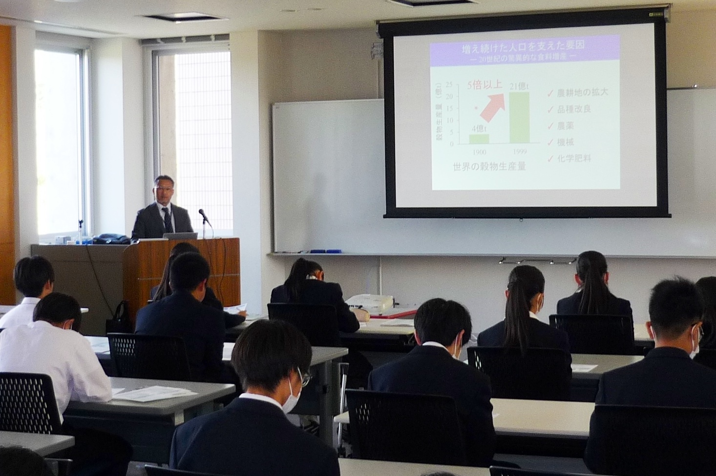 10月13日(金)横手城南高校1年生の生徒24名 引率者2名が、本荘キャンパスと秋田キャンパスを見学しました。この見学会は、大学の説明や施設見学を通し、高校の学びと大学での学びの違いや共通性に触れ、自らの進路選択に関する意識を高めるとともに、文理の類型選択の一助とする事を目的に実施されました。