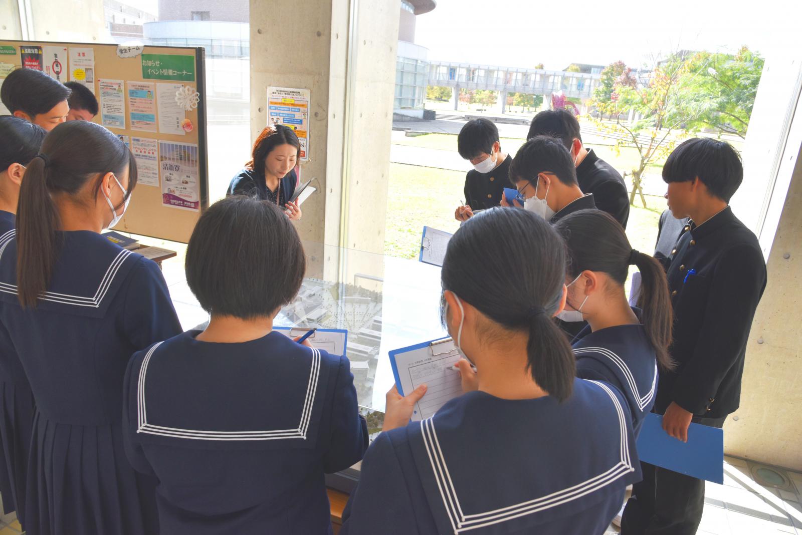 10月13日(金)に秋田市立御野場中学校3年生の皆さんが秋田キャンパスに来学しました。総合的な学習の時間「ふるさと秋田の自然や文化、産業などを知り、ふるさとに誇りと愛着をもつ」ふるさと学習の一環として、キャンパスを見学いただきました。