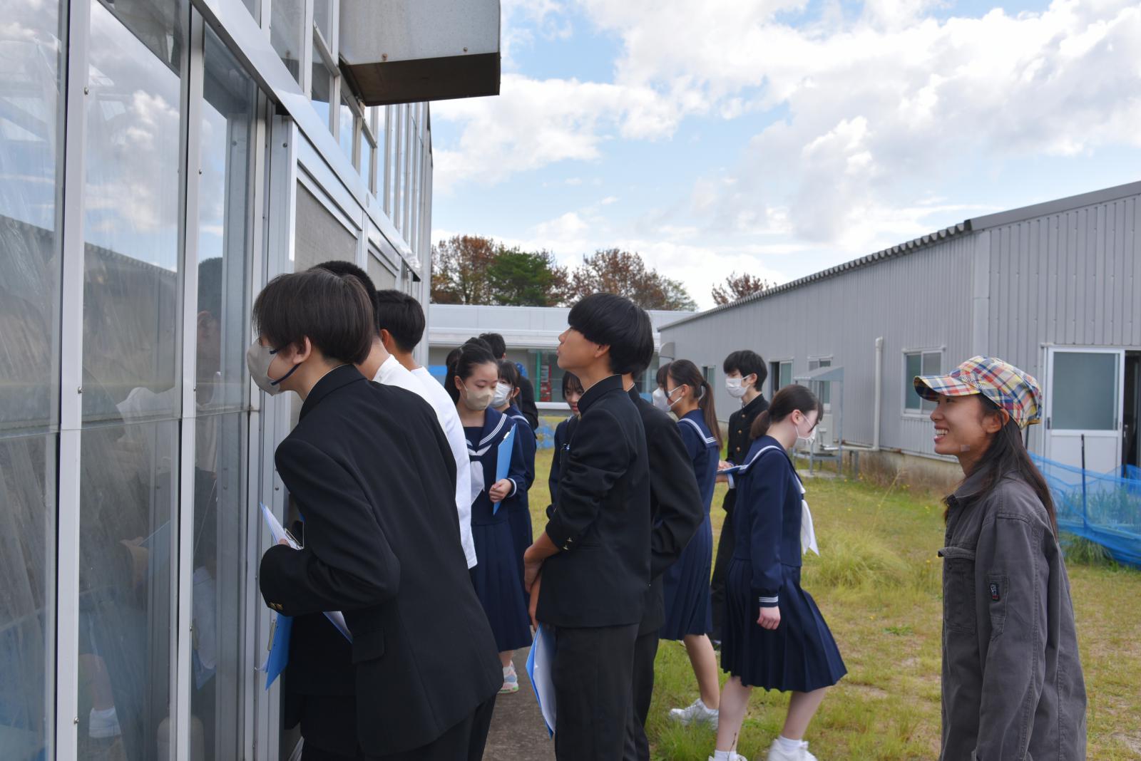 大学院棟、学部棟、図書館、体育施設などを周り、圃場では職員による見学ツアーを行いました。大学での研究や取り組みについて説明を聞き、茄子の花や、綿花などの普段触れる機会が少ない作物にも触れ、積極的に分からないことがあれば「これはなんですか?」と興味深々に質問する姿が見られました。
