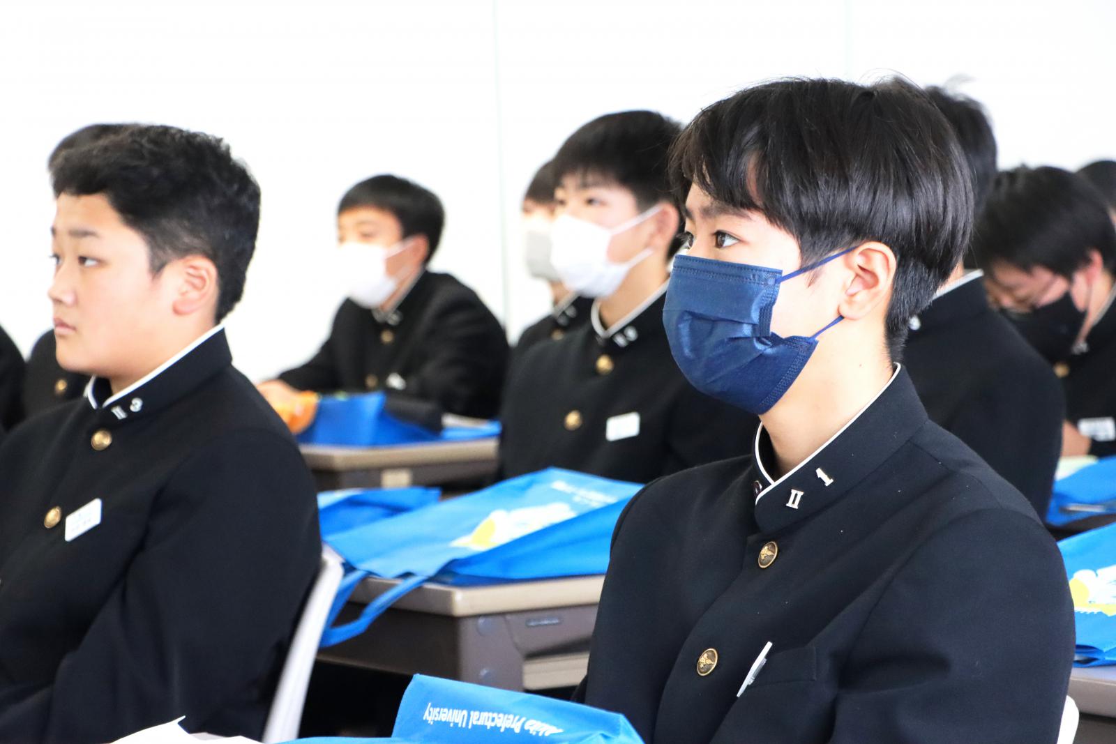 10月27日(金)に秋田市立外旭川中学校2年生の皆さんが秋田キャンパス見学に訪れました。「総合的な学習の時間」の授業の一環で、進路や生き方を考える機会のひとつとして、キャンパスを見学いただきました。