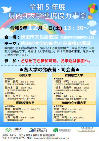 【12/9開催】令和5年度県内4大学連携事業を開催します