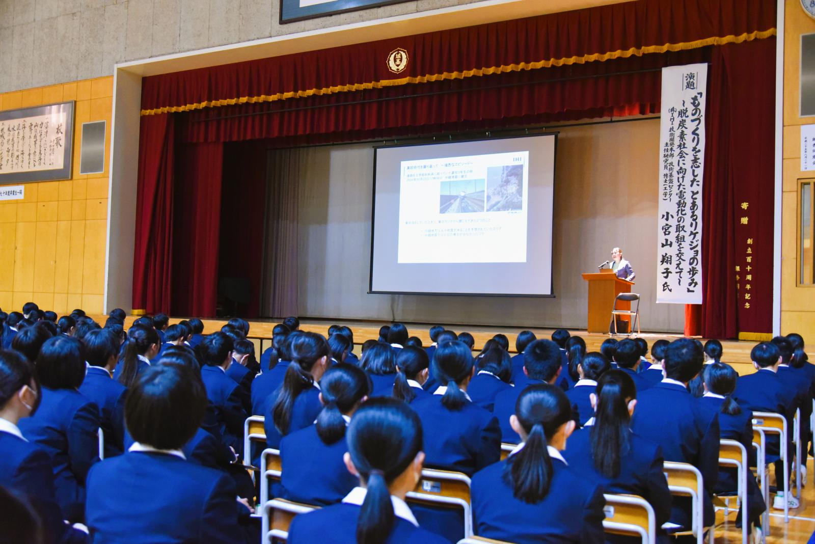 対象は、横手城南高校1、2年生の生徒約300人。女性活躍の視点や国が推奨する工学分野への女性進出を促すことを目的に、 株式会社IHIの女性エンジニアである小宮山翔子氏をお招きし、ご講演いただきました。