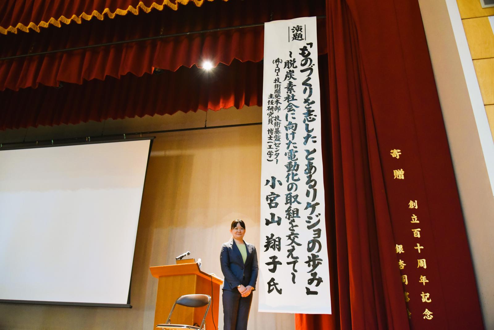 演題は、「ものづくりを志した とあるリケジョの歩み~脱炭素社会に向けた電動化の取組を交えて~」。
