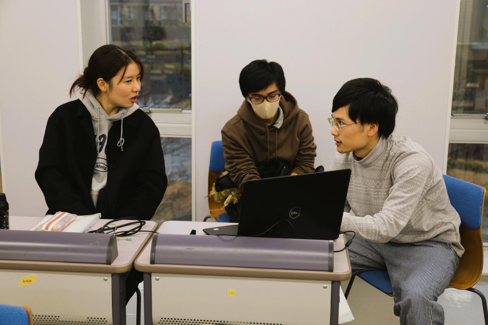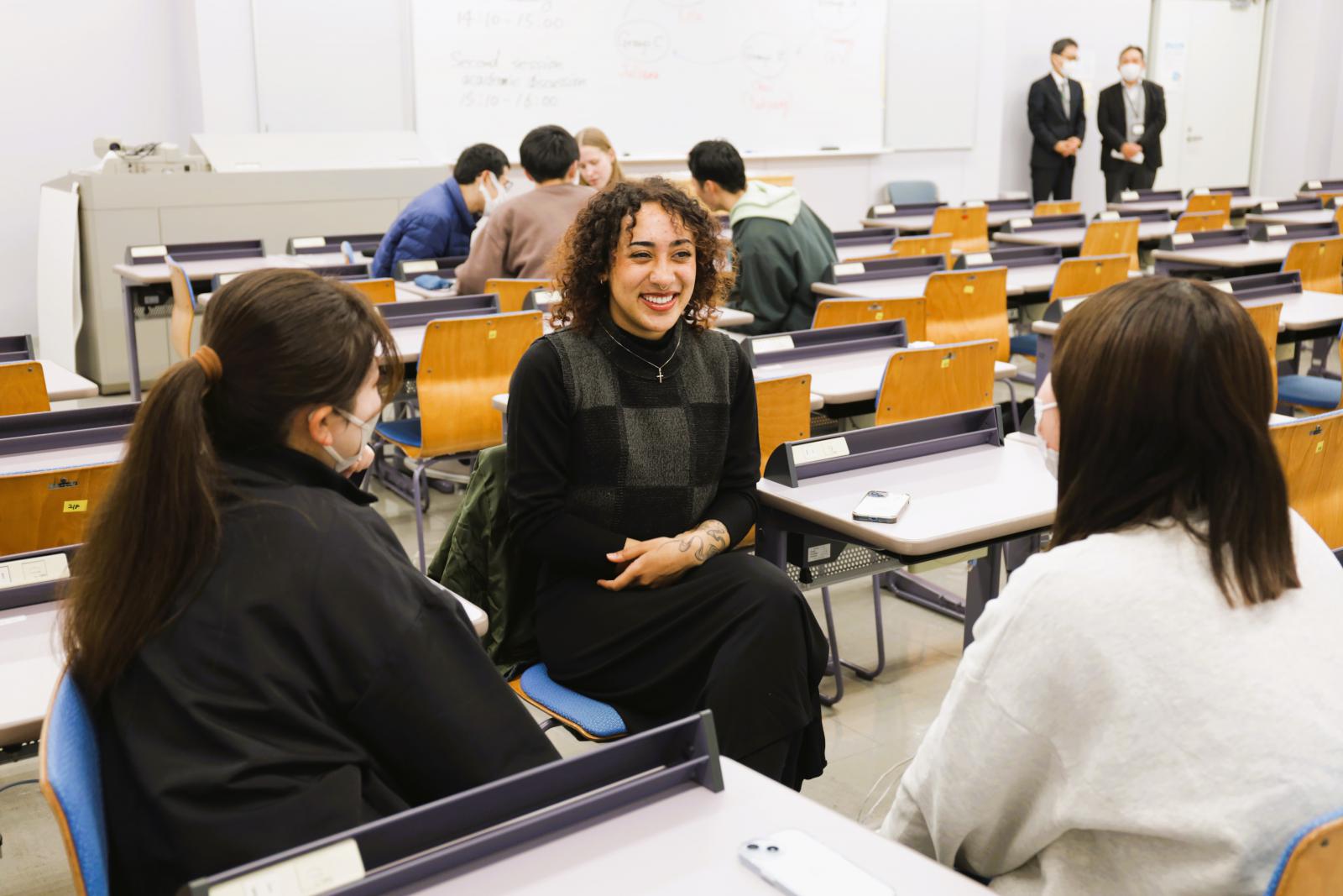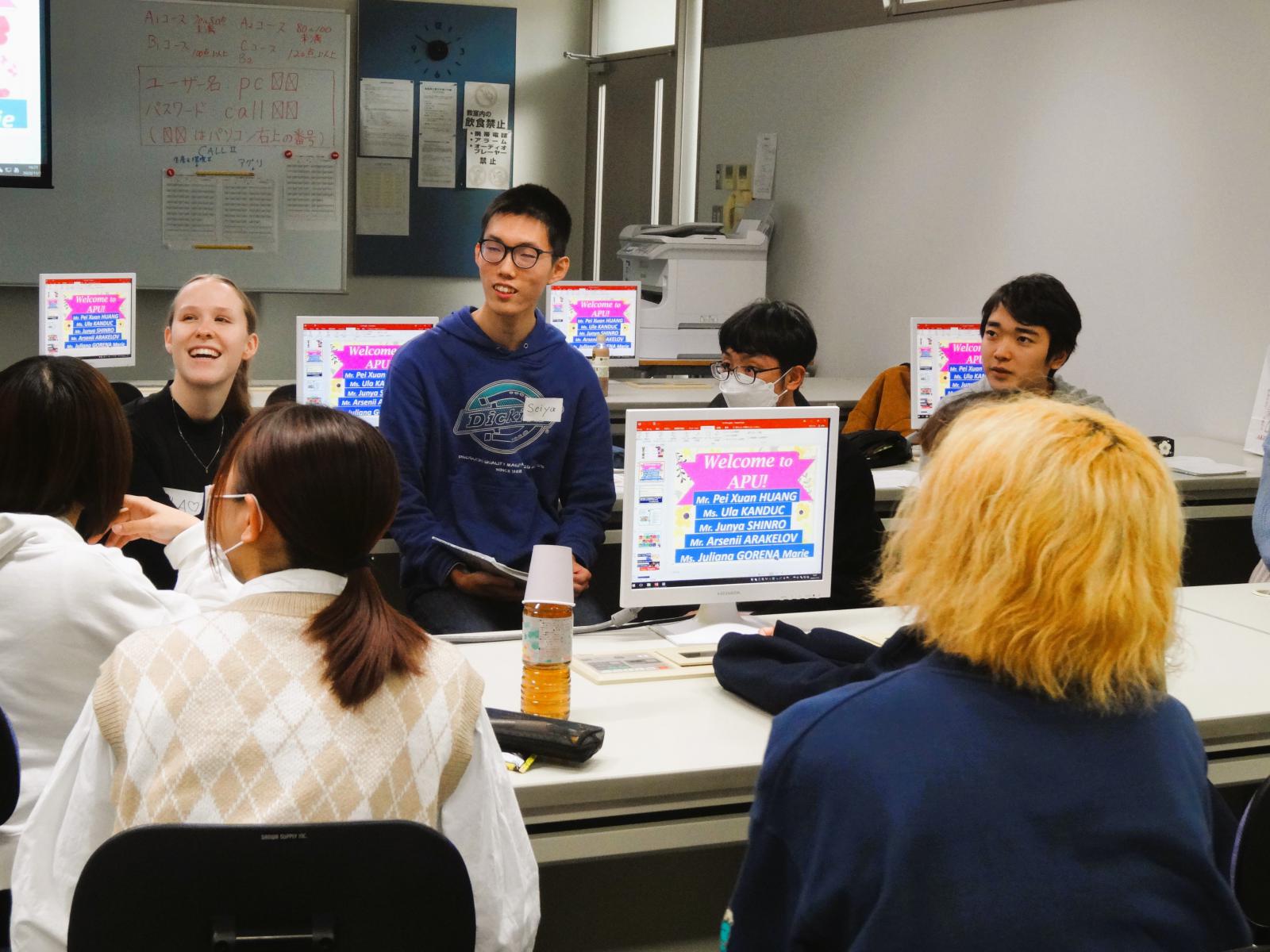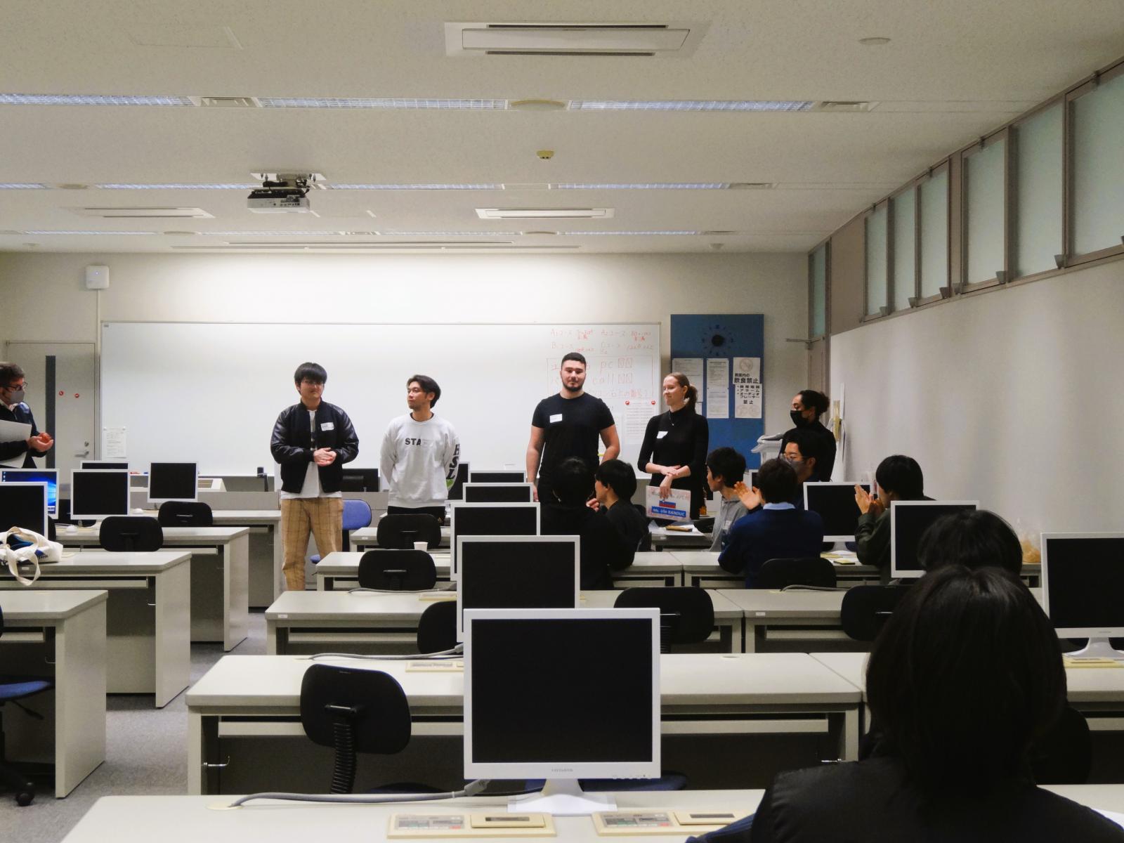 本荘キャンパスには、中国、韓国、スロベニア、アメリカの留学生4名が参加し、英語サークル所属の学生との交流会や、修士学生の研究についてディスカッションを行いました。秋田キャンパスでは、中国、スロベニア、アメリカ、アルメニアの留学生5名が本学の外国語授業に参加しました。