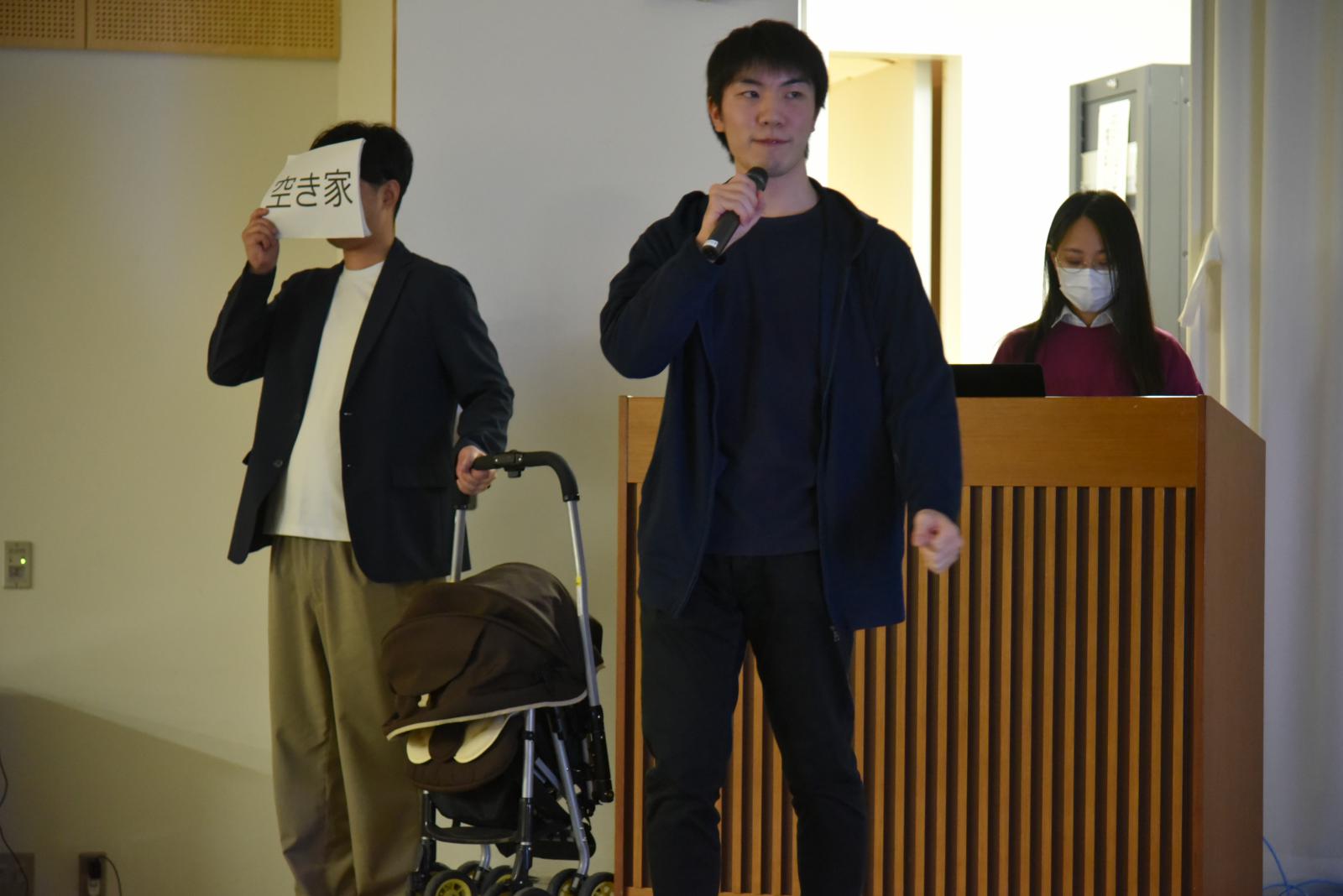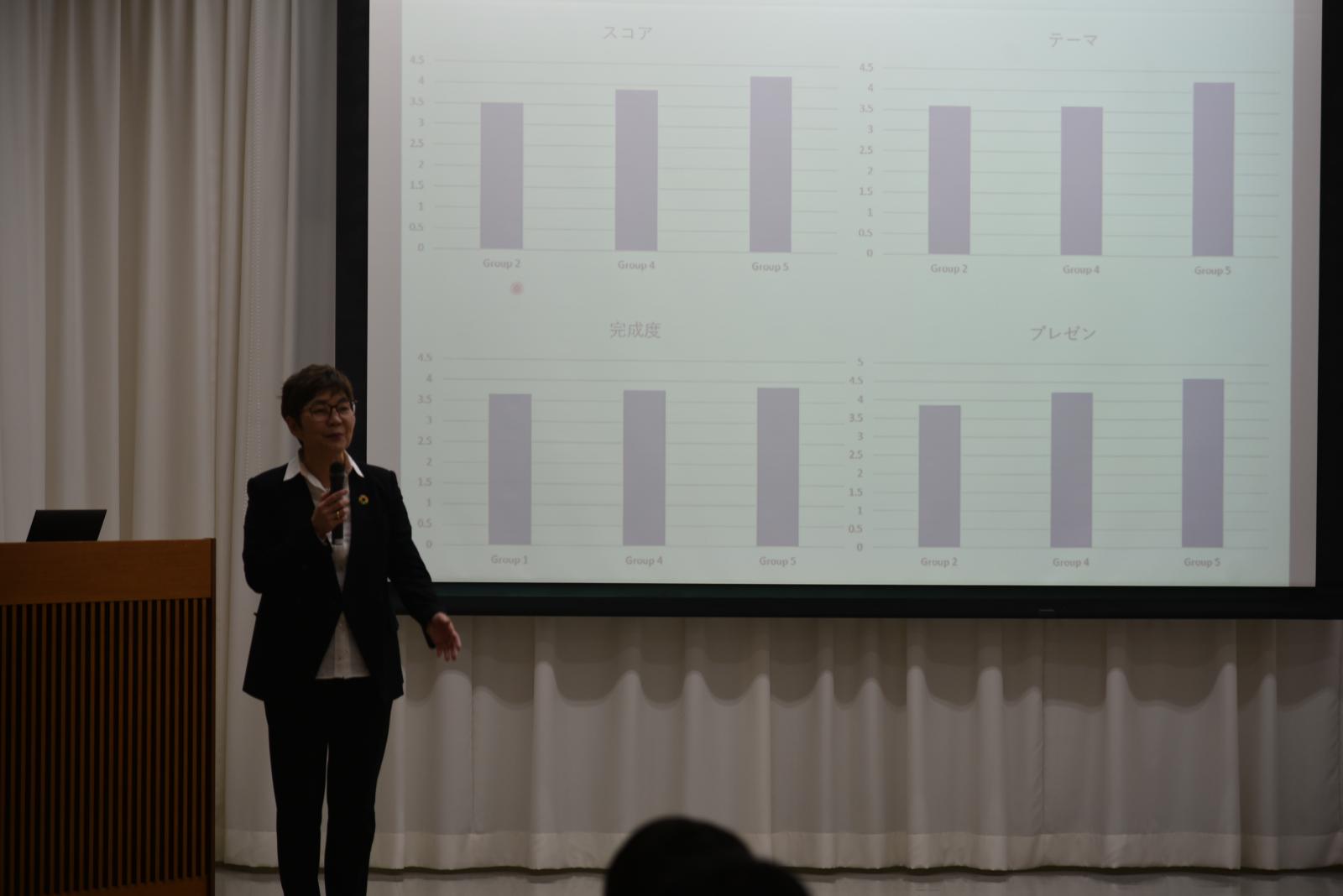 全5班が、フィールドワークを含むワークショップを通じて着想したビジネスコンセプトをもとに、「ターゲットとなる顧客は誰か?」「顧客のどのような問題を解決するのか?」「どうやって売上をあげるのか?」といった視点から、班によっては動画や寸劇を交えた発表を行いました。それぞれの班の発表について各班を含めた会場の方々が評価し、見事Group.5 ”想いを断ち切る:空き家利活用サービス”が1位を勝ち取りました。