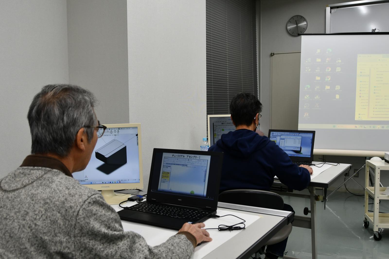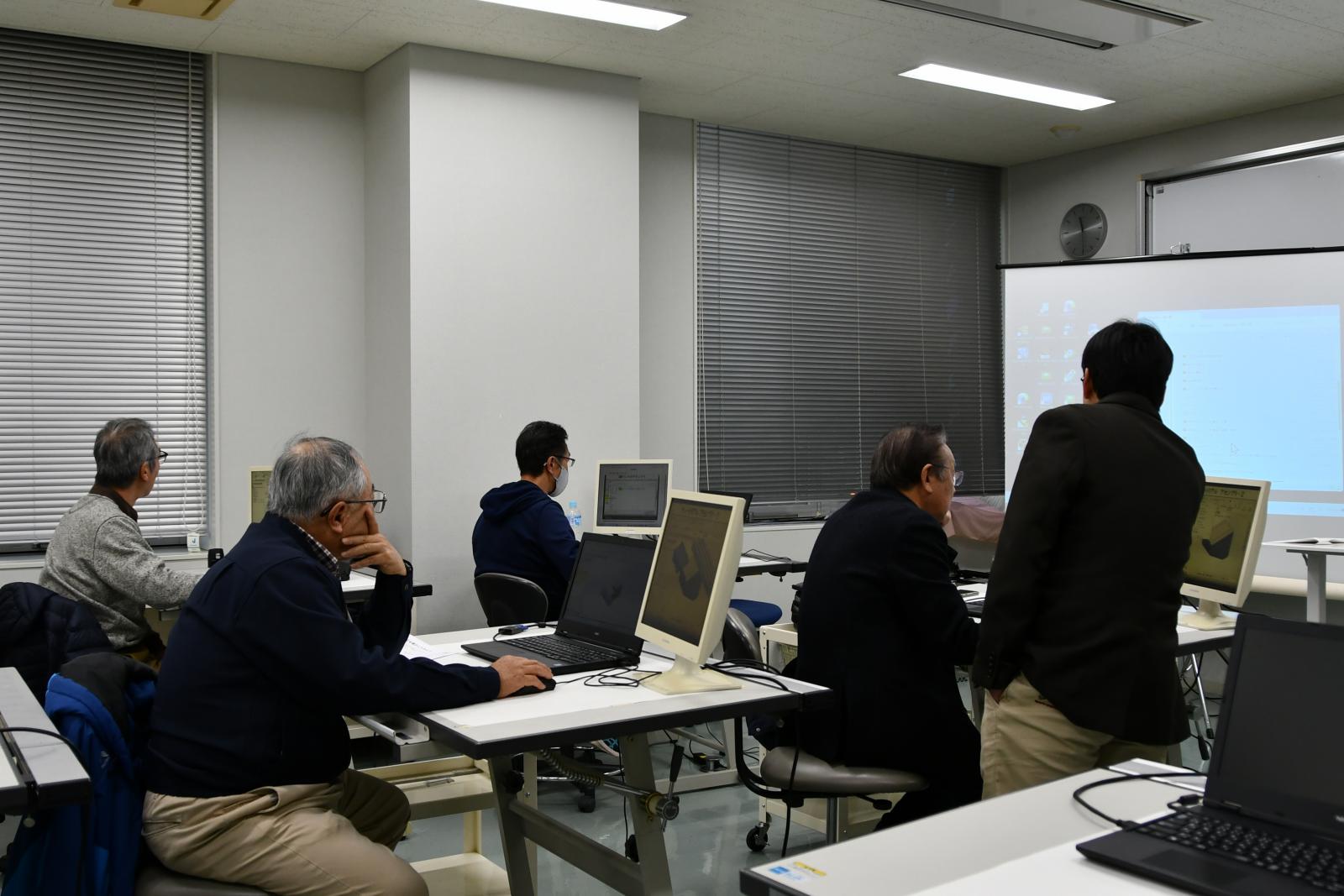 12月13日(水)に本荘キャンパスにて、第5回創造工房クラブGG(グランド・ジェネレーション)が行われました。第5講目となる今回は、高橋 武彦 准教授(機械工学科)による、「3次元モデリングを学ぼう~動きをデザインしよう~」というテーマのもと、Solidworksを用いて3次元CADのアセンブリモデリングをおこないました。パーツモデリングでモデル化した複数の形状に対して、幾何学的な拘束を与えて組み立てることで、回転運動を直線運動に変換するような単一の動きが実現できるようになりました。