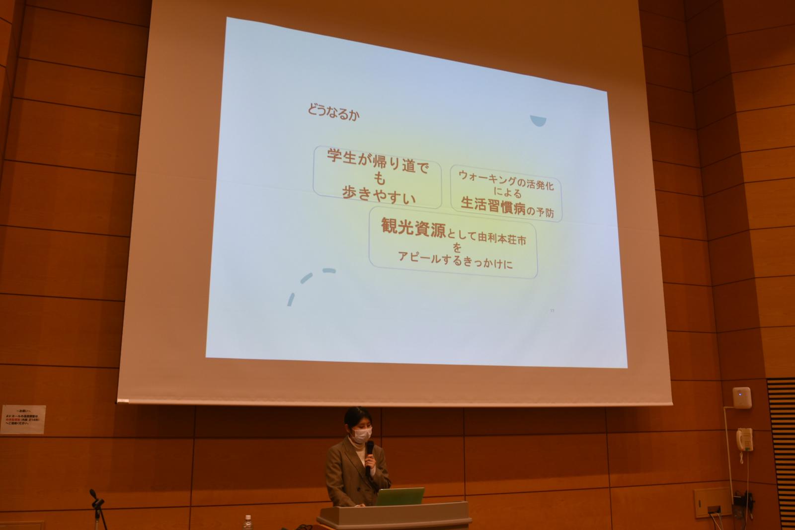 当日は、由利本荘市長 湊 貴信 氏をはじめ地域住民の方など約100名(オンライン視聴約50名)が観覧。観覧者も、発表を聞いて感じたことをギフトコメントとして贈ることで対話型の発表会となりました。