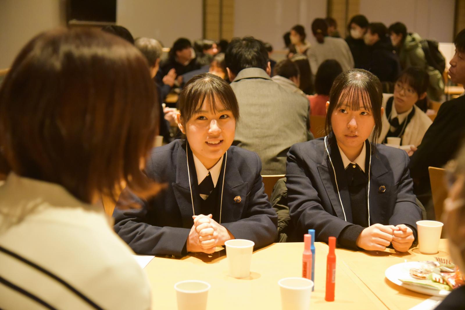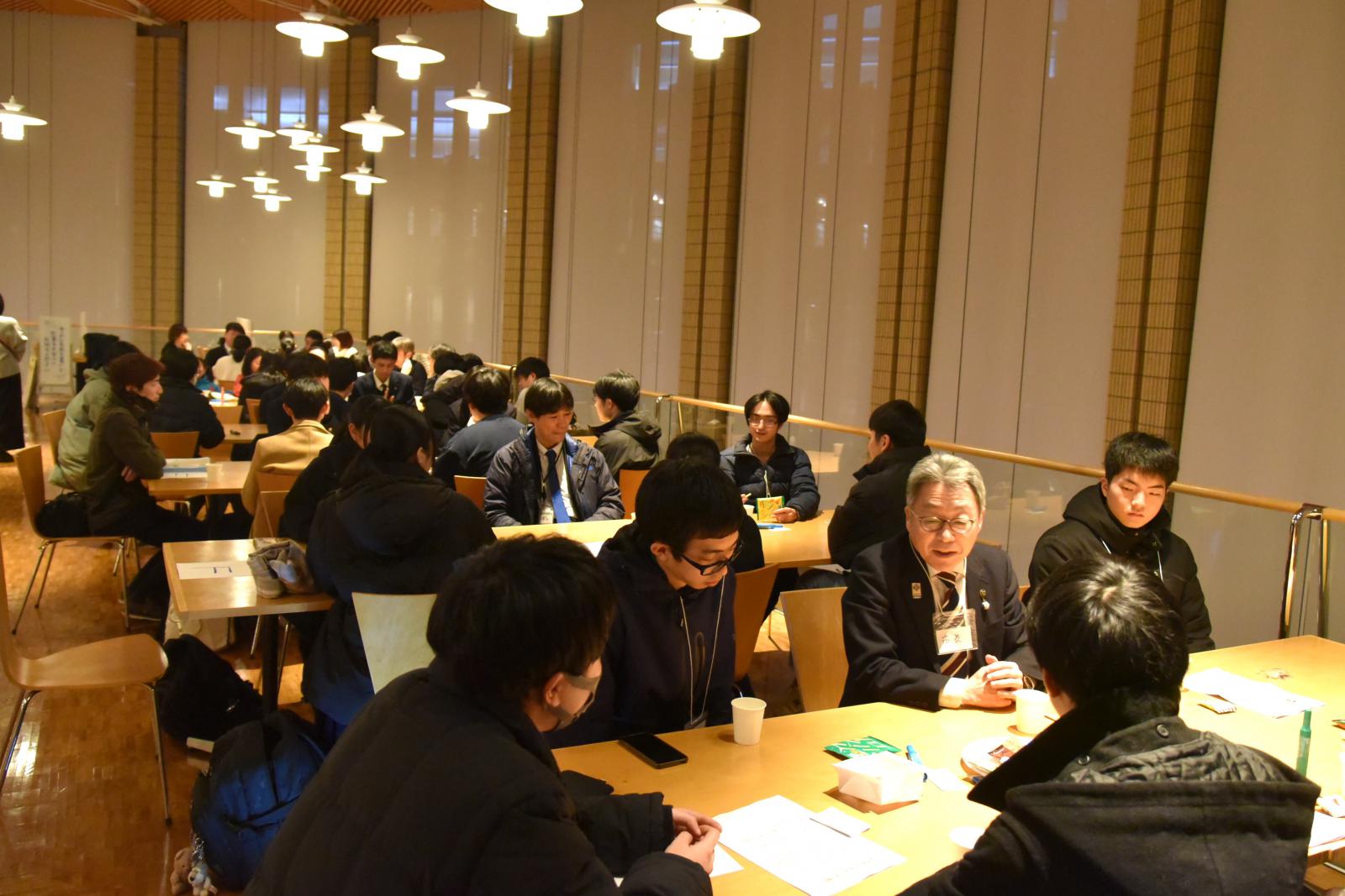 アイデア発表会のあとは、会場をカフェテリアへ移して交流会も実施。お子さん連れや、高校生、社会人の様々な世代の方約50名が参加しました。アイデア発表会を受けて感じたことを発言し、考えを共有しました。第一回の参加者も多く参加いただいており、地域創生に対しての考えをさらに深め、活発に発言されている様子が伺えました。