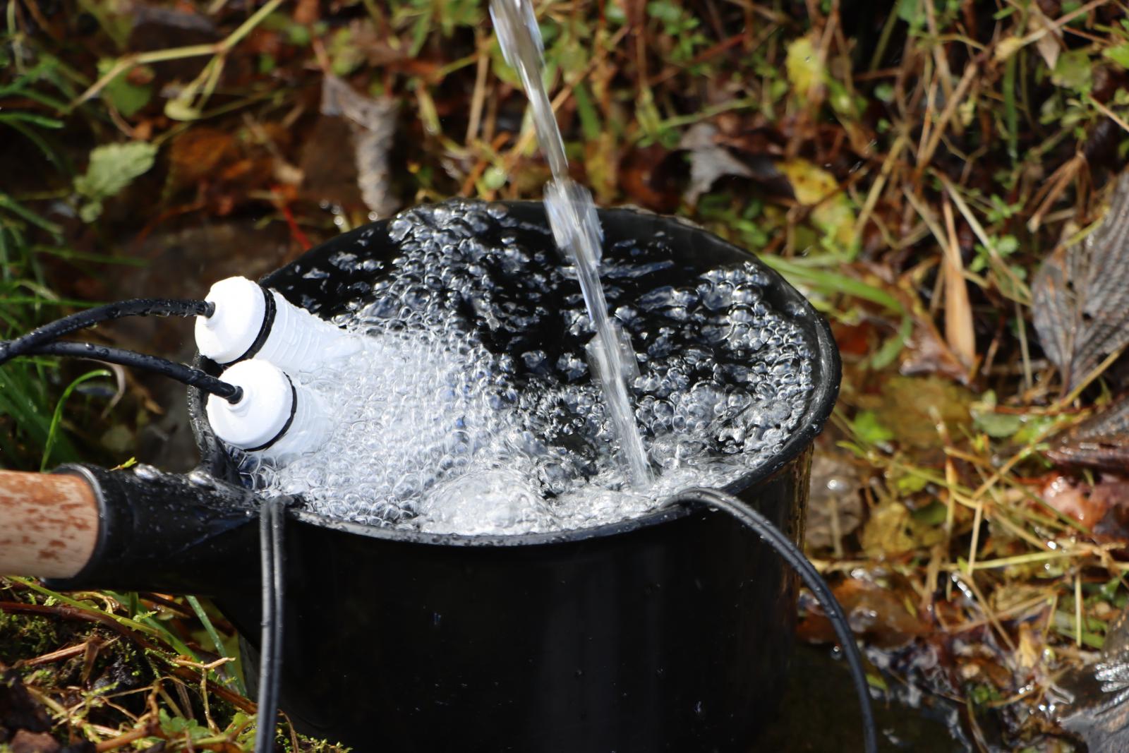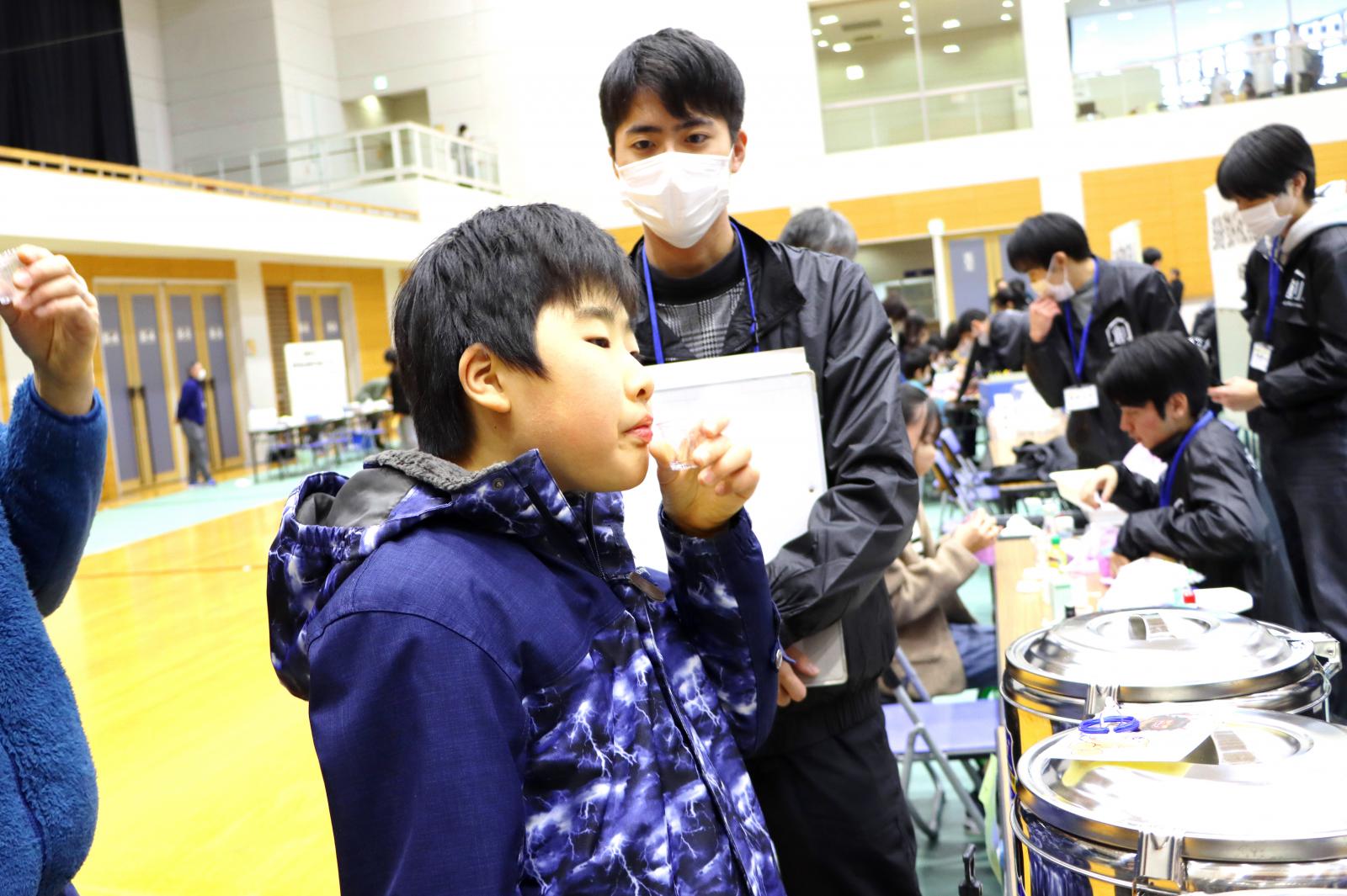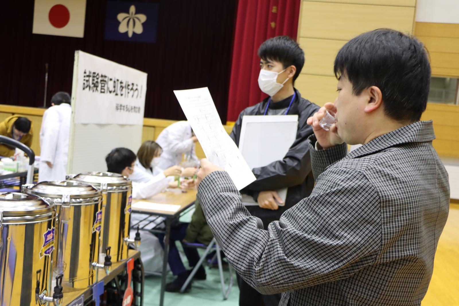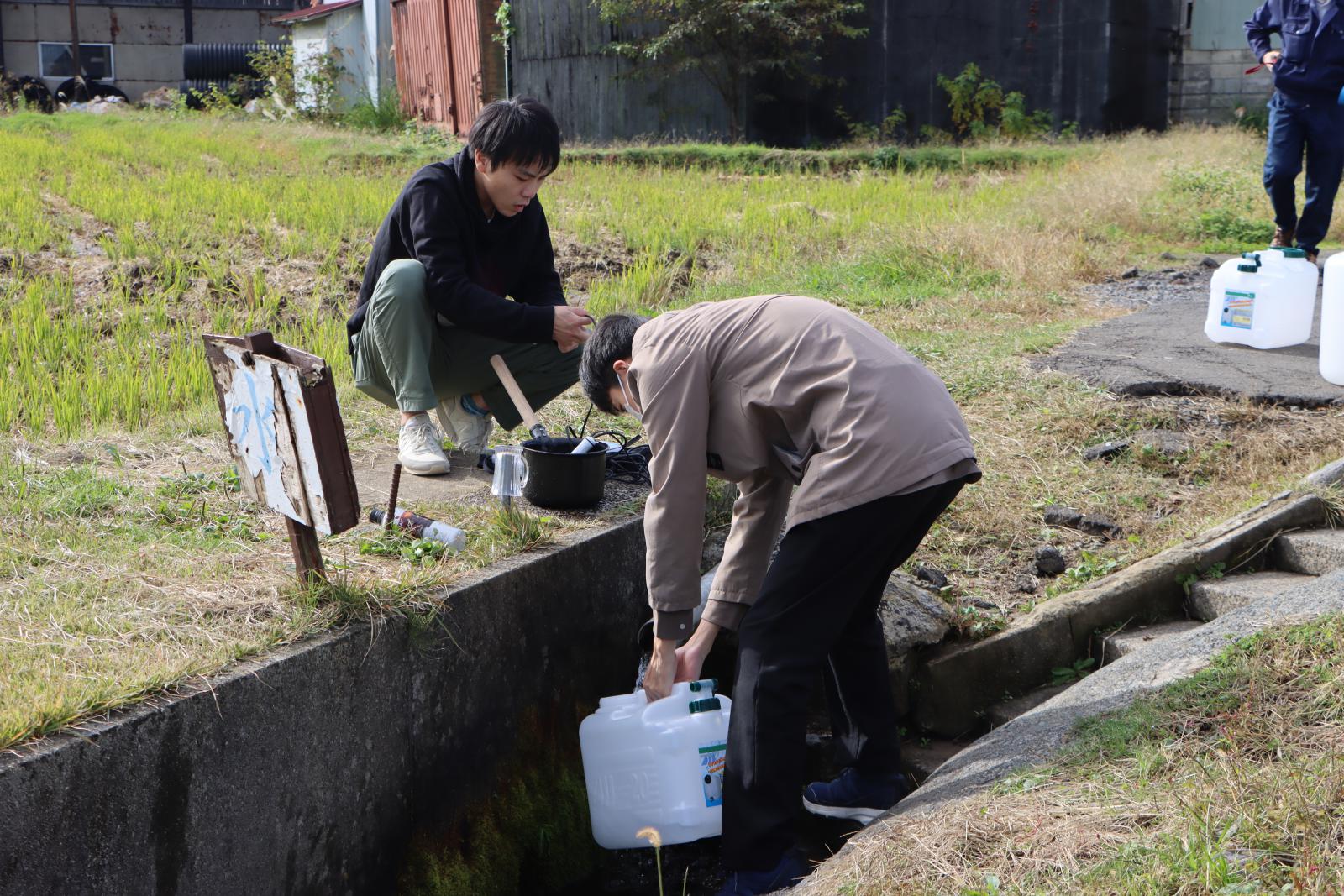 千葉さんら研究室のメンバーは、鳥海山麓から湧水を汲み、本荘キャンパス学園祭「潮風祭」や由利本荘市科学フェスティバル等の機会を捉え、湧水の飲み比べを実施しました。その際、ペットボトルを購入する代わりに、同研究室が制作・デザインしたオリジナルマイボトルを販売し、市民にマイボトル持参を呼びかけました。