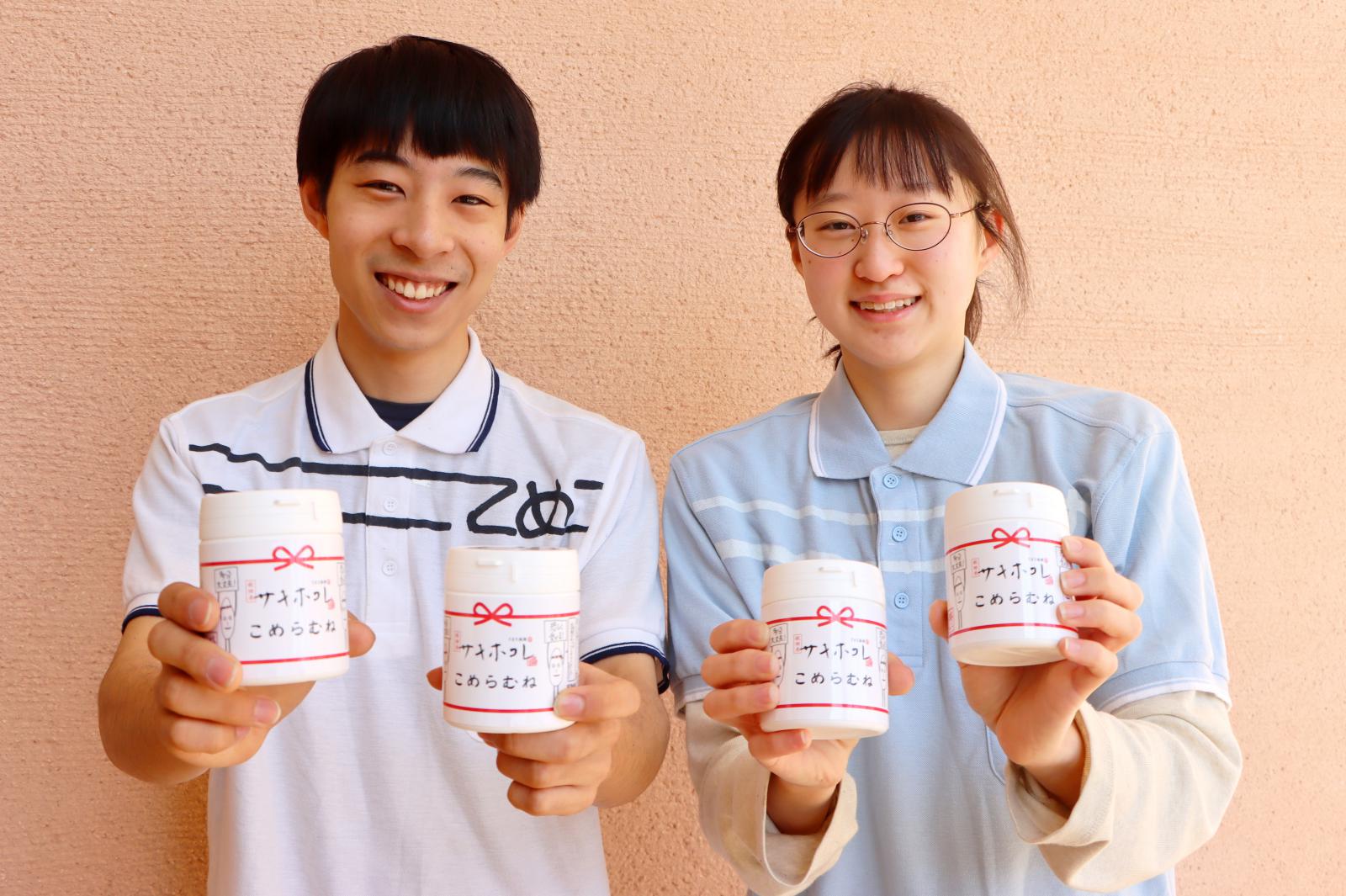 新たに商品化した合格ラムネは、原料を秋田県の高級ブランド米「サキホコレ」の米粉を使用しています。メンバーは、縁起の良い名称に着目し、受験生を応援したいと考え商品開発に挑戦しました。メンバー自身も、受験勉強の際に、眠気覚ましにラムネ菓子を良く食べ、ブドウ糖を摂取し脳を活性化させ、受験を乗り切ったそうです。
