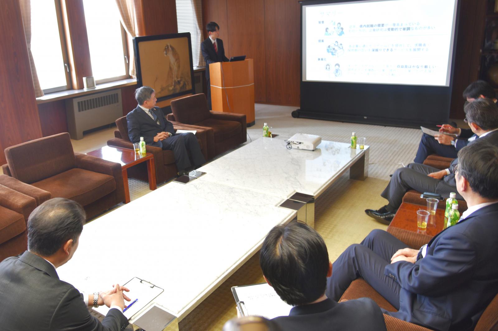 本学では、開学20周年記念募金を原資に創設した「ふるさと元気創成基金」の事業の一つである「アクティブ人材奨励事業」により、ふるさとの振興に意欲とビジョンを持った学生を応援する、アクションプラン・コンテストを開催しています。株式会社北都銀行様は、地域に根ざした金融機関として、地域の課題解決に資するビジネスプランを持つ意欲のある人材を応援する本事業の趣旨にご賛同いただき独自に表彰しております。この度、システム科学技術学部経営システム工学科3年の与斉 祐稀さんのアクションプラン『知りたいことがまるわかり!ストーリーワーク企業紹介』が北都銀行頭取賞を受賞しました。与斉さん、おめでとうございます!!