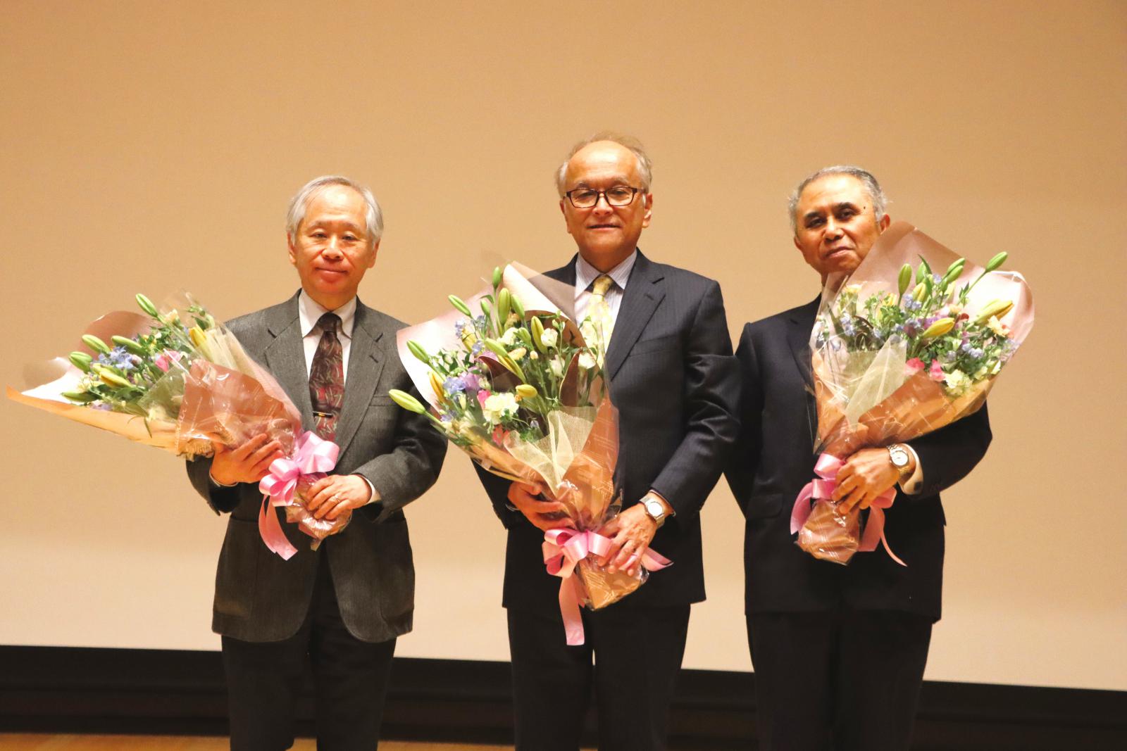 今年度で定年を迎える教員3名の最終講義を行いました。研究者となるまでの道のりや、本学での教員生活を振り返りながらご専門の研究について語られました。会場には、教職員・学生らが訪れ、感謝の意を込めて花束が贈られました。