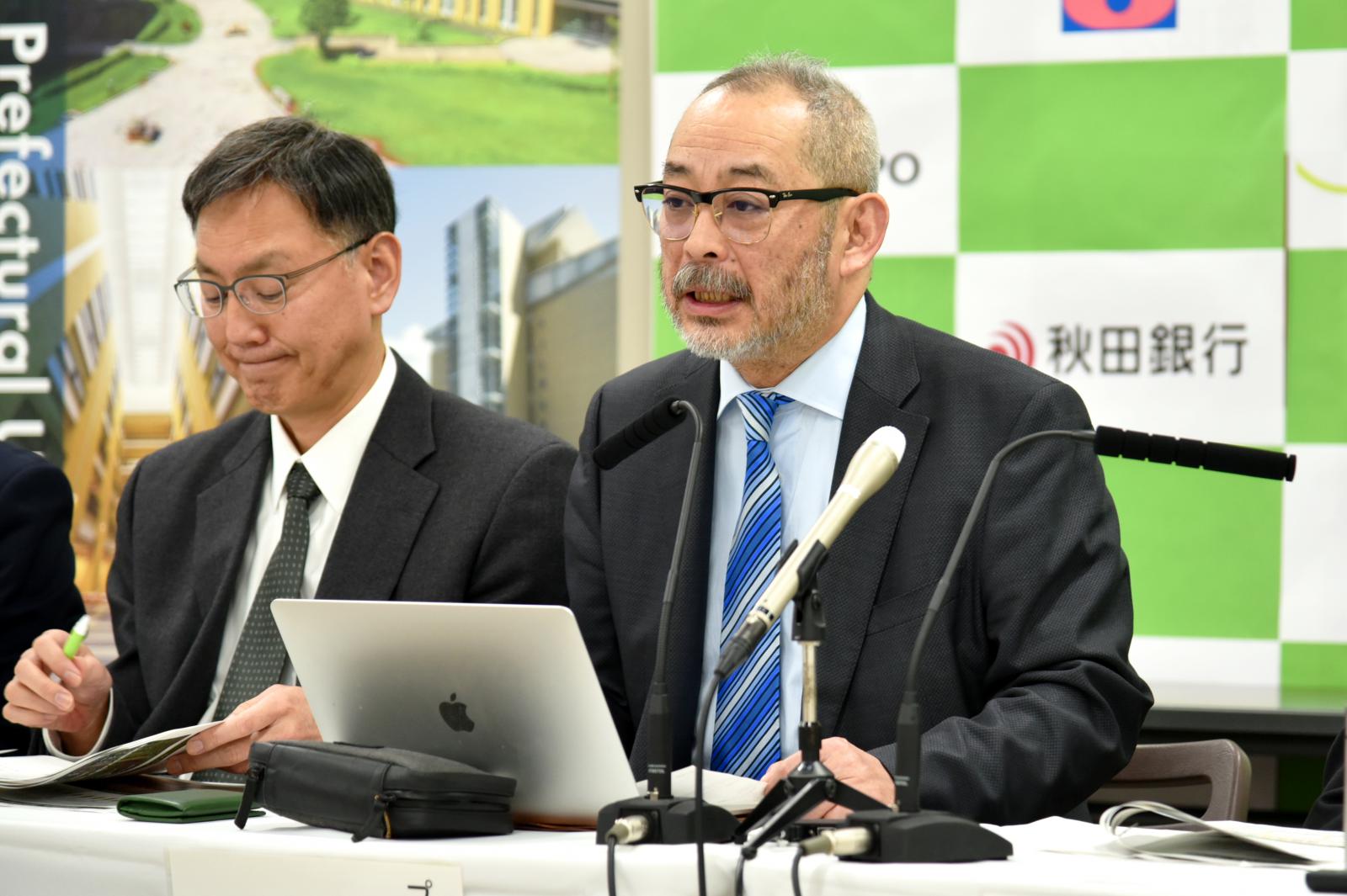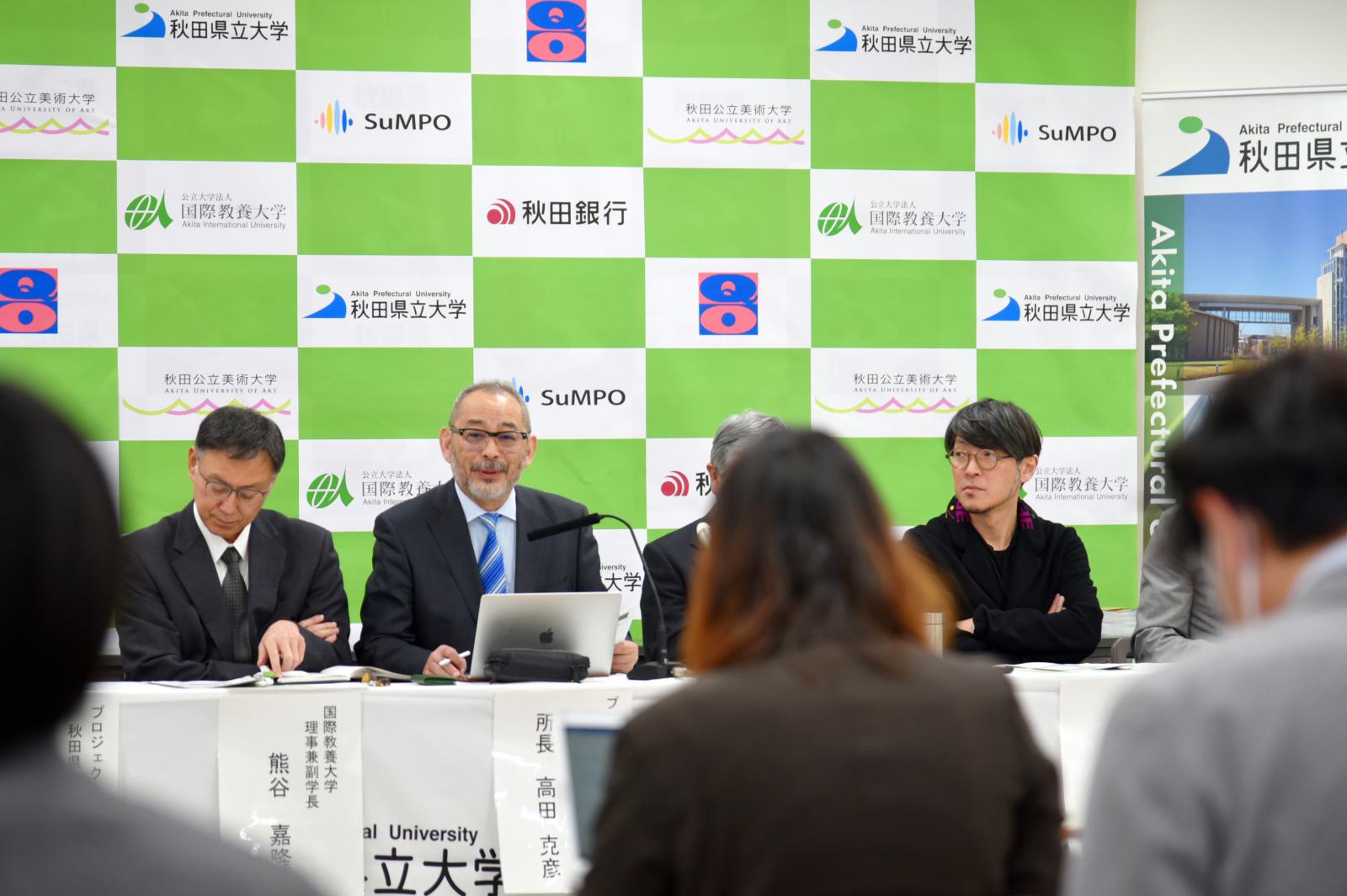 国立研究開発法人科学技術振興機構(以下JST)が公募する、令和4年度「共創の場形成支援プログラム(COI-NEXT)【地域共創分野・育成型】」として採択されていた、本学木材高度加工研究所の高田 克彦 教授・所長がプロジェクトリーダーを務める『技術x教養xデザインで拓く森林資源活用による次世代に向けた価値創造共創拠点』が、【地域共創分野・本格型】への昇格プロジェクトとして採択され、3月6日(水)、秋田県庁で記者会見が開催されました。