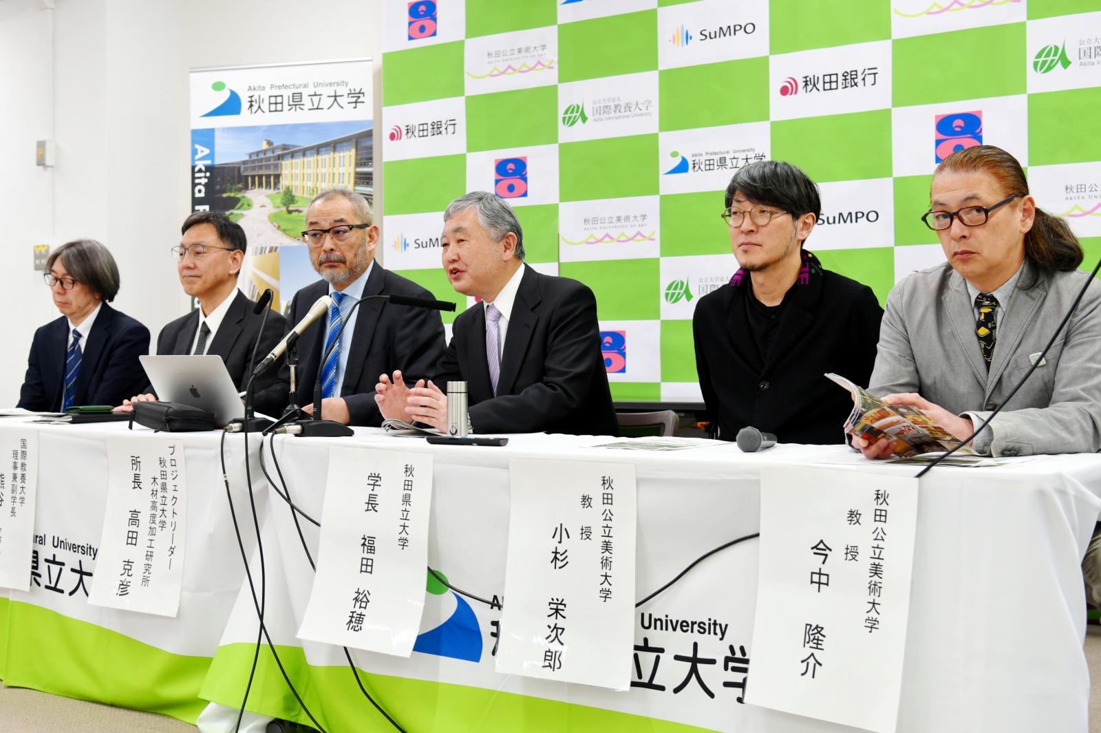 本プロジェクトは、人口減などで地域社会が縮小する中で、秋田県の「森林資源」を多角的に活用することで、資源や技術を受け継ぎ、人材と文化の交流を促して経済・産業を活性化させ、新しい循環システムの構築を目指すプロジェクトで、本学を代表機関に、国際教養大学、秋田公立美術大学、㈱Q0、一般社団法人サステナブル経営推進機構、㈱秋田銀行を幹事機関、その他県内外の民間企業等を参画機関とする合計21機関で構成されます。