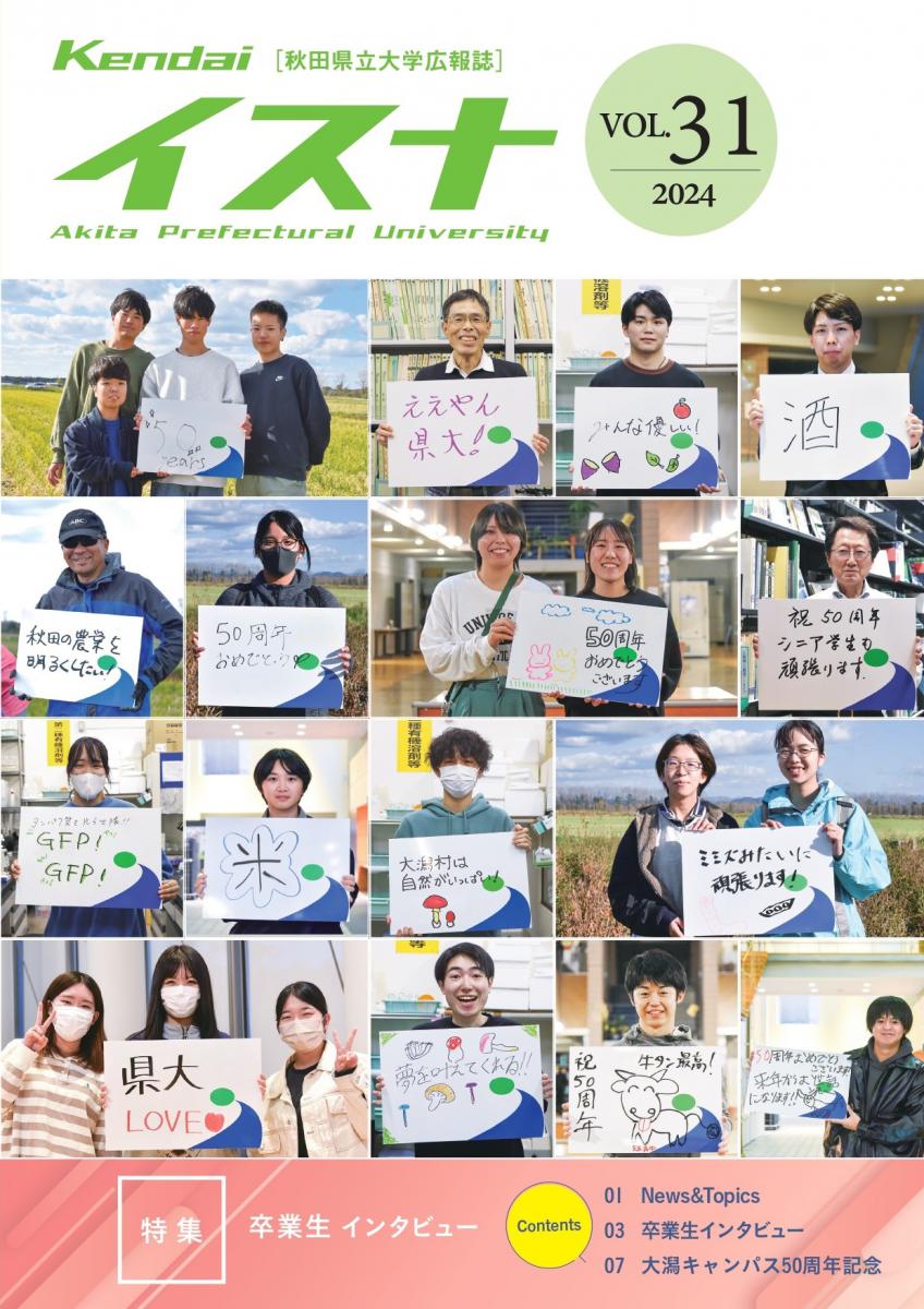 広報誌『イスナ』Vol.31(最新号)が発行されました。「卒業生インタビュー特集」のほか、ニュース&トピックス、50周年を迎えた大潟キャンパス記念式典の様子など、盛りだくさんの内容でご紹介しておりますので、是非ご一読ください。