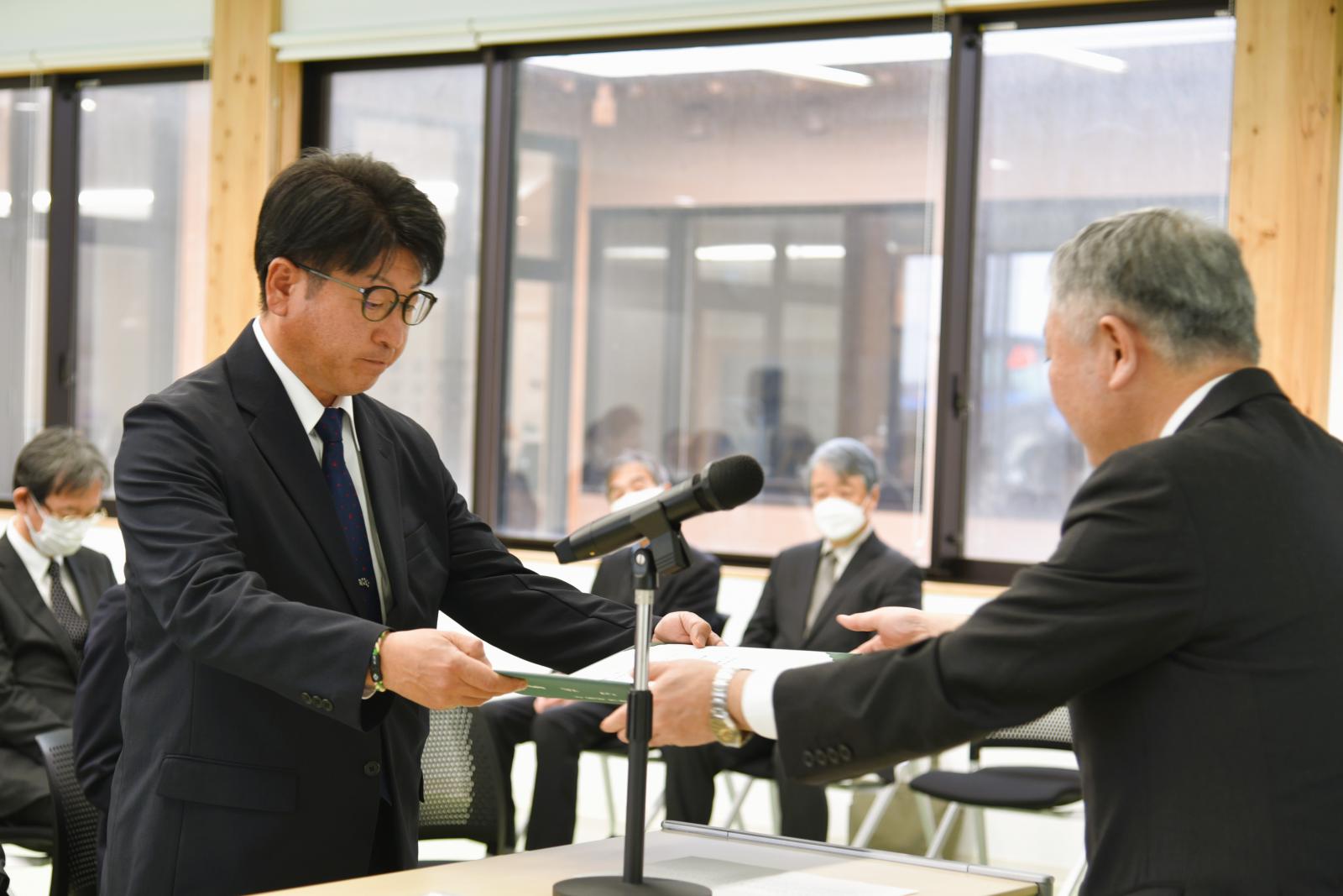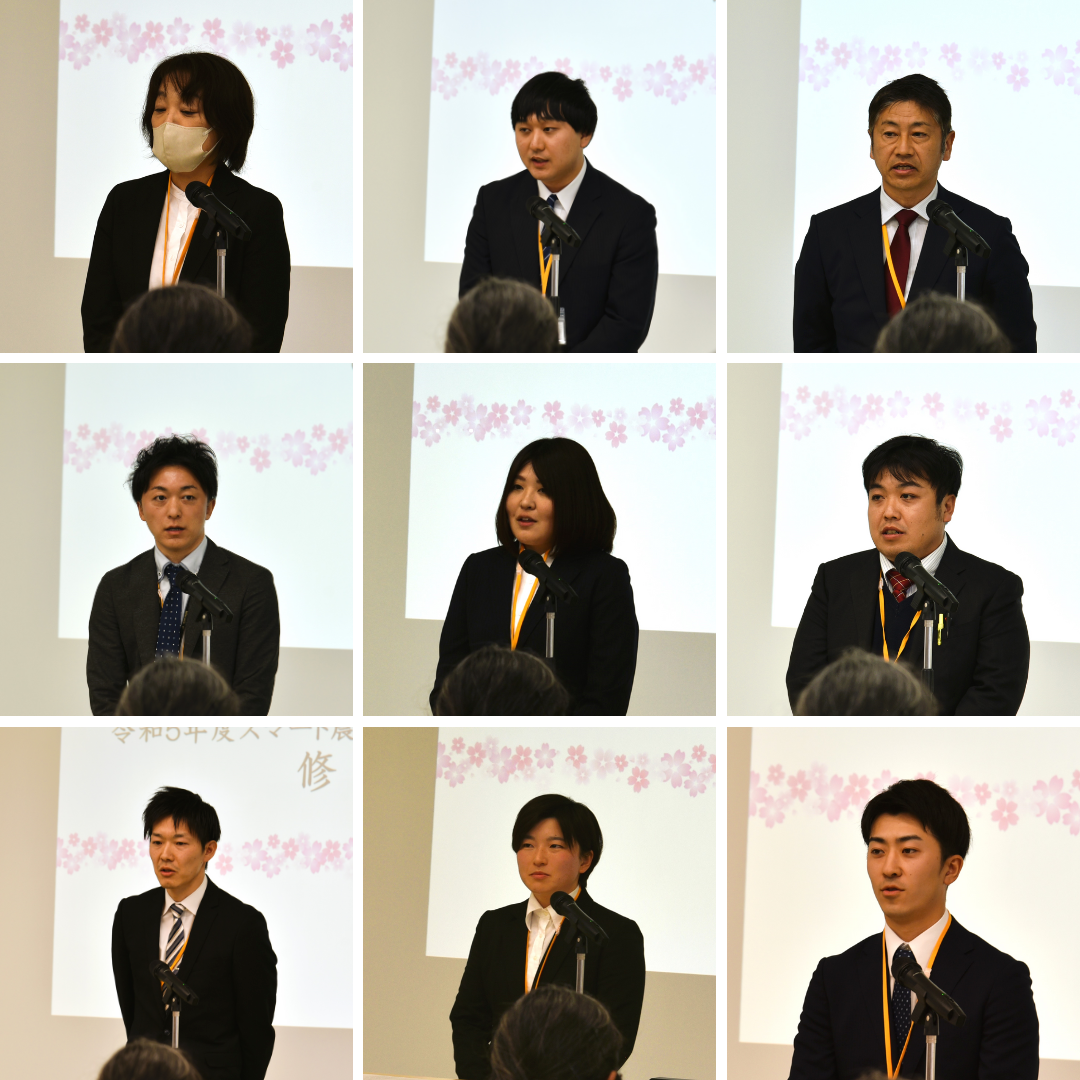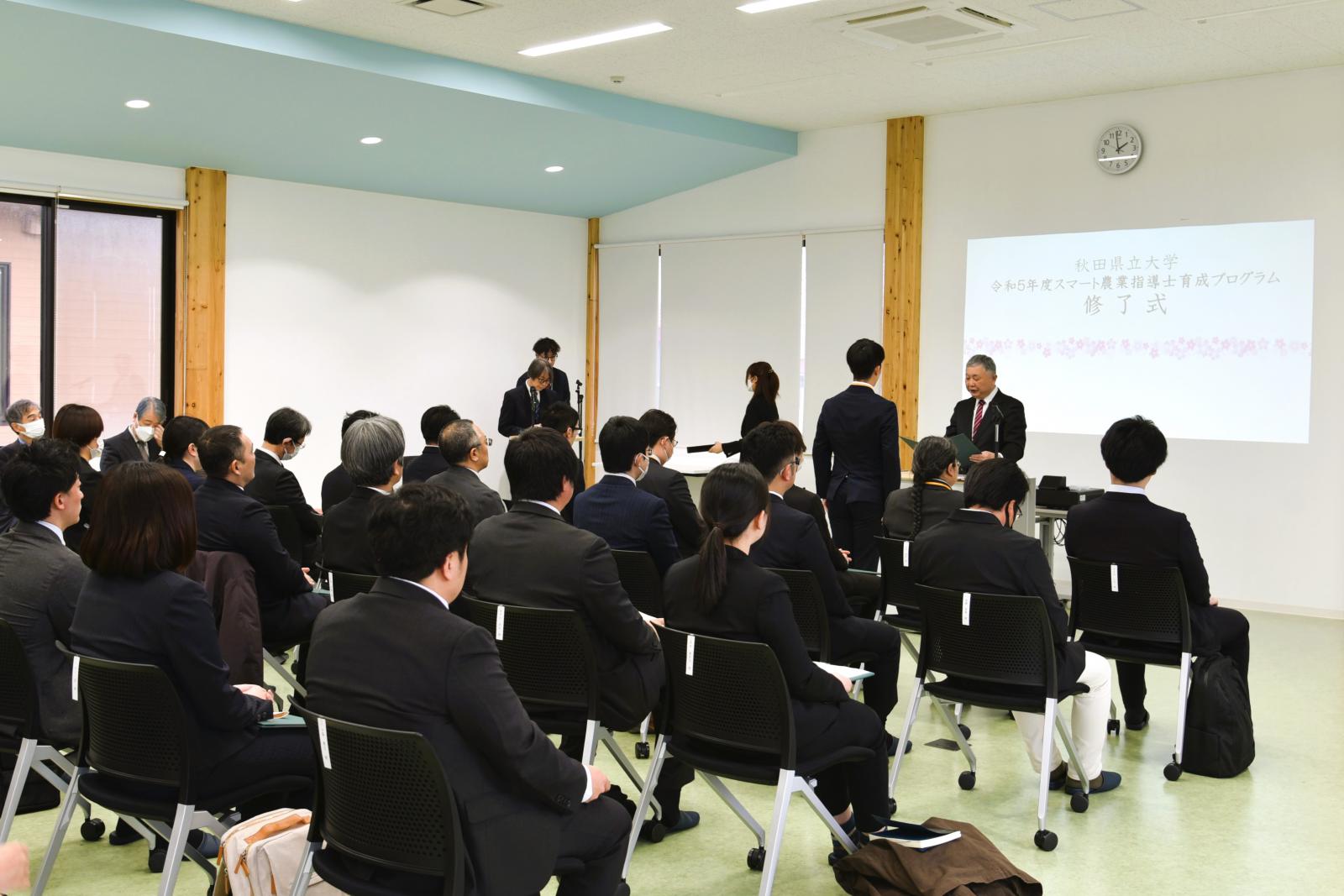 福田裕穂学長より「スマート農業指導士認定証書」を授与され、修了生らは、「地域農家のみなさんの声に耳を傾けながら、スマート農業の発展に遅れをとらぬようこれからも知識と経験を身につけ地域農業に普及させていきたい。」、「学んでみてスマート農業=デジタル農業ではなく、経営・栽培管理の適正化であることを学んだ。」、「早速、地域で水位センサー実演会や若手農業者の視察研修を予定している。これからも普及活動に取り組んでいきたい。」、「生産者や形態にあった提案をしていきたい。」と抱負を語りました。