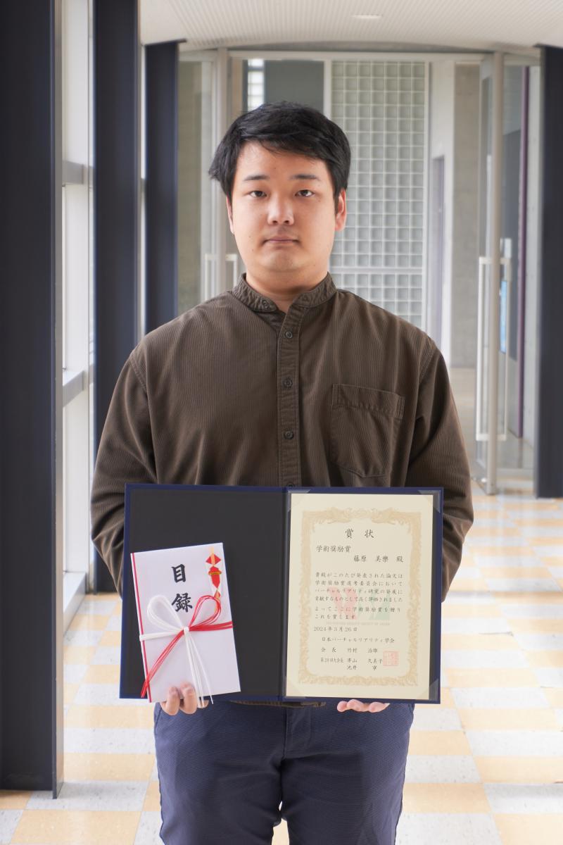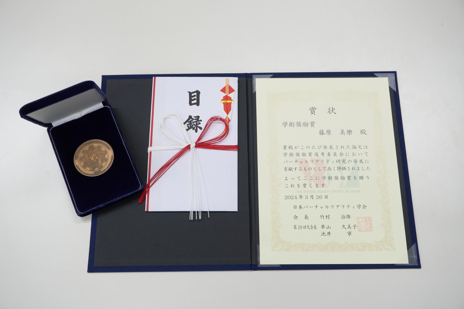 この度は、日本バーチャルリアリティ学会の第28回大会で学術奨励賞を受賞し、大変嬉しく思います。このような栄誉を得ることができたのは、寺田先生や研究室の皆様からの指導や助言のおかげです。心より感謝申し上げます。今回の受賞経験を励みに、日々精進して参ります。