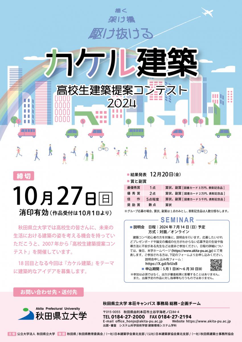 秋田県立大学では高校生の皆さんに、未来の生活における建築の姿を考える機会を持っていただこうと、2007年から「高校生建築提案コンテスト」を開催しています。