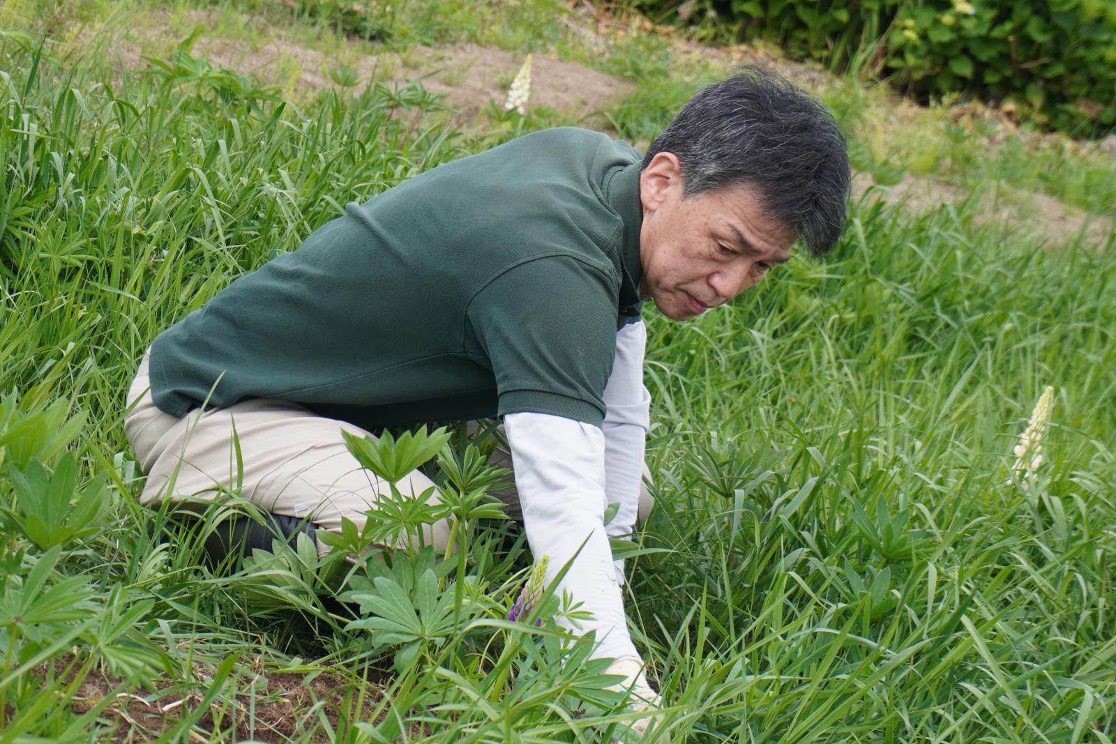 ルピナスを巻き込まないよう慎重に草取りをしました