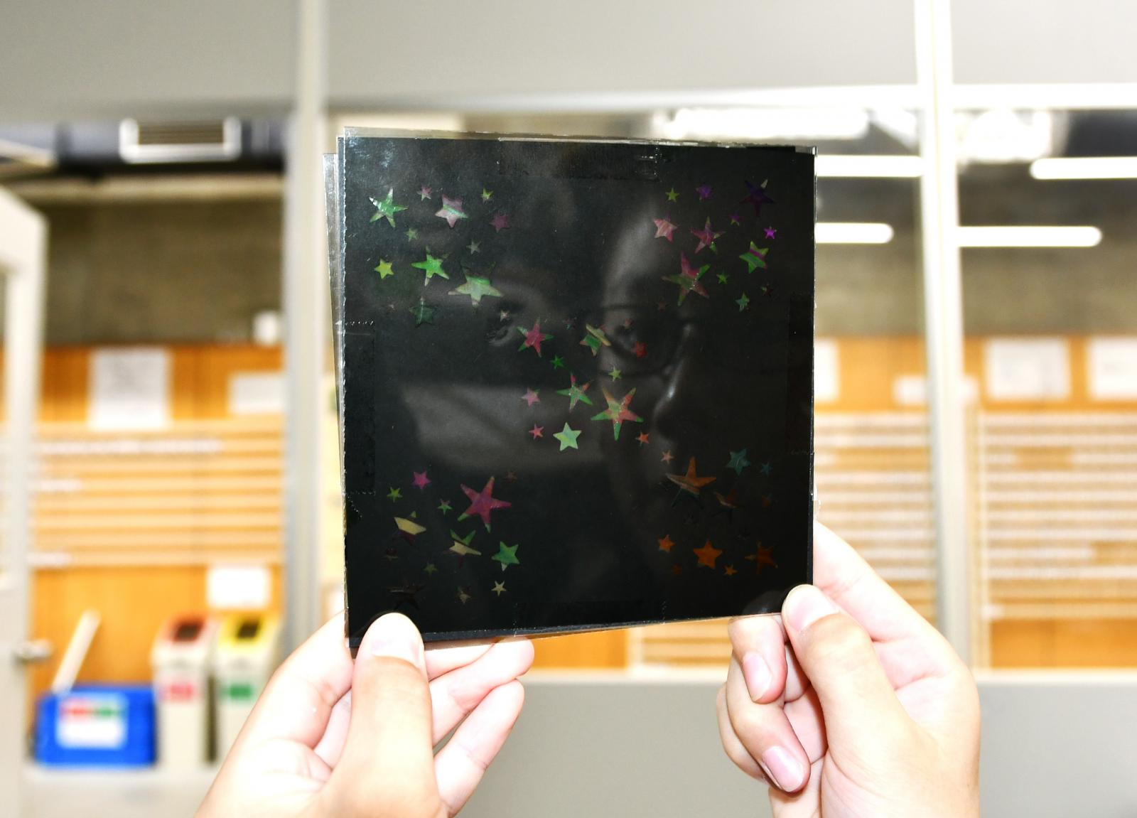 入校式のあとは、伊東 良太 先生(知能メカトロニクス学科)による、「光のいろいろ初級編~光のぬり絵で遊ぼう~」というテーマのもと、偏光板という特殊なフィルムと光の性質を用いた科学教室を実施しました。セロハンテープのはり方を工夫することで、一つ一つ違った色の作品が出来ました。
