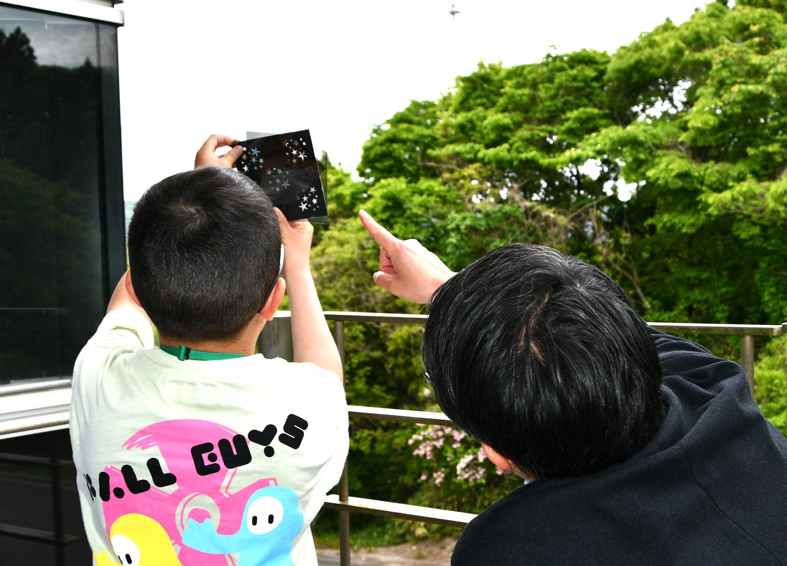 完成したあとは、外に出て太陽光を当ててぬり絵を観察しました。よりキラキラ光る作品に皆さん大喜びでした。