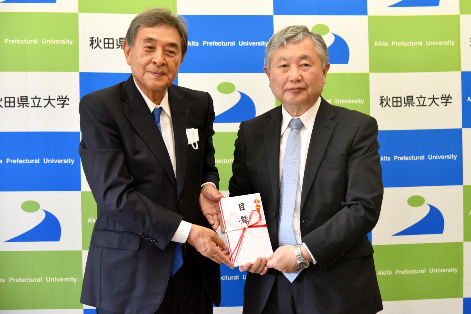 福田裕穂学長へ目録が贈呈