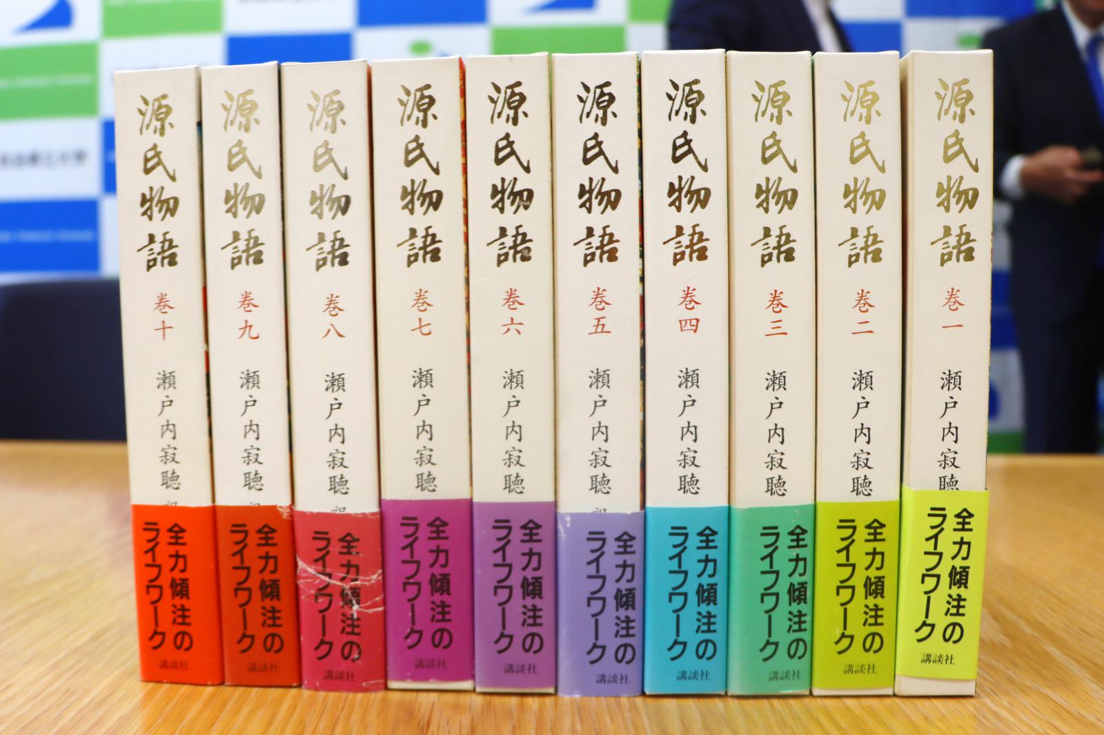 瀬戸内寂聴さんは、恋愛や歴史などをテーマに数々の小説を発表しながら法話を通じて人々の悩みに寄り添う活動を続けていましたが、今回寄贈いただいた「源氏物語」10巻は、瀬戸内寂聴さんが現代語訳をし、ご本人が所蔵されていた大変貴重なものです。