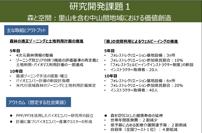 【研究開発課題1】(森と空間)里山を含む中山間地域における価値創造