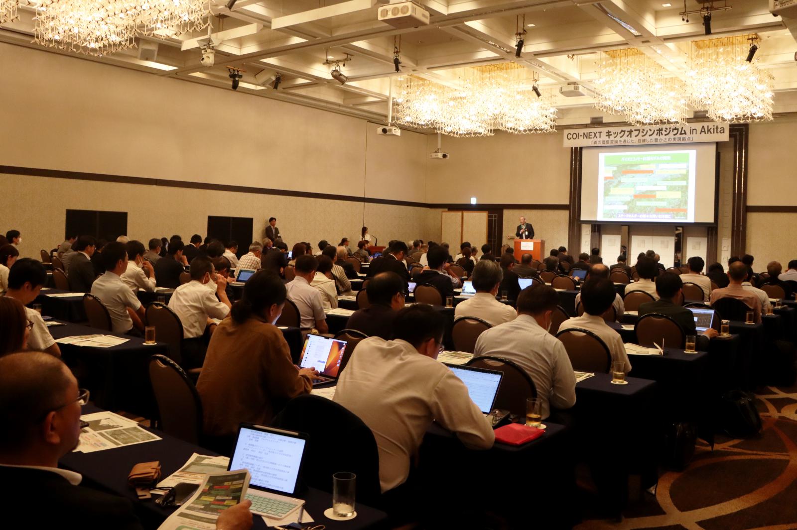 令和6年6月28日(金)、秋田市/ANAクラウンプラザホテルにおいて、本拠点の全体像と各研究開発課題の概要説明、さらには自治体、企業、研究機関等との連携推進の方策などについて意見交換するため、「共創の場形成支援プログラム(COI-NEXT)キックオフシンポジウムin Akita」を開催しました。