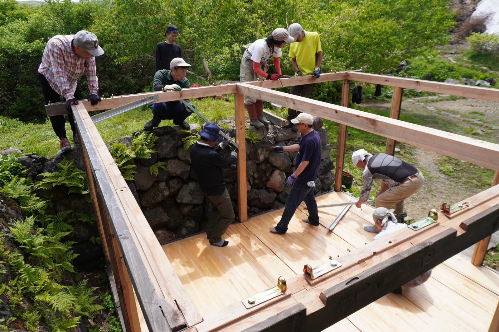 6月29日、鳥海山5合目矢島登山口にて、サークル「秋田学生まちづくり団体」(あきまち)が祓川神社の組立作業に参加しました。※秋田学生まちづくり団体は、地域資源の発見・活性化を目標に活動している秋田県立大学の公認サークルです。