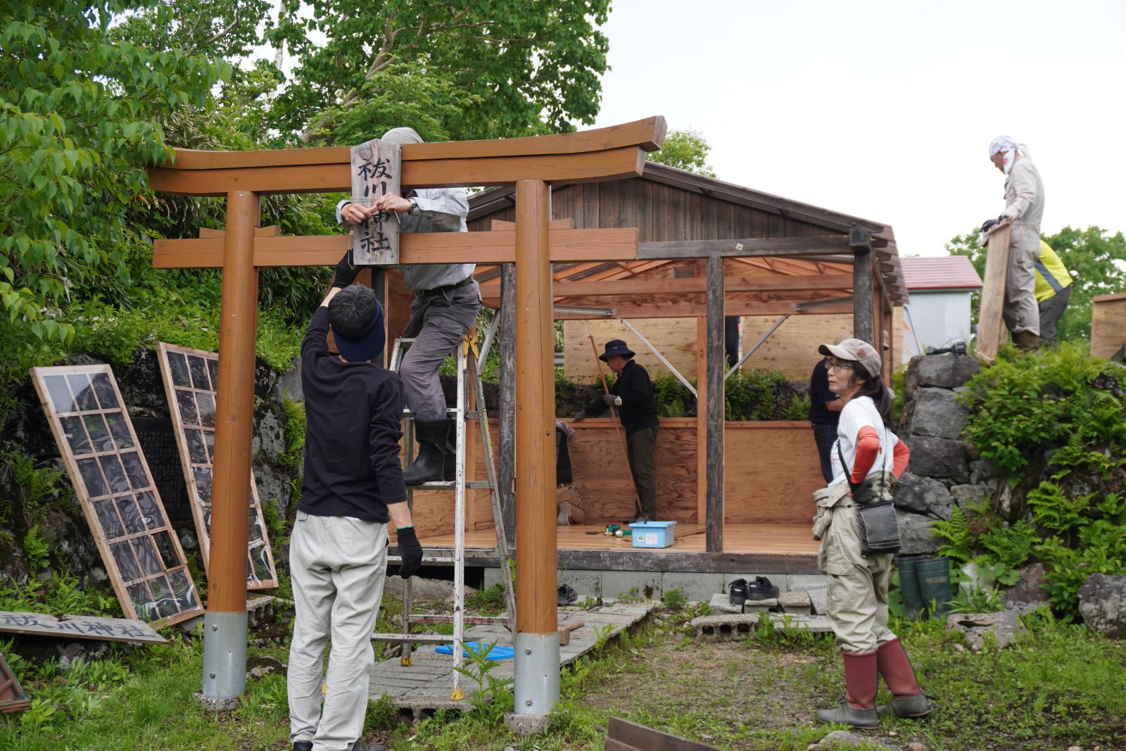 【サークル活動】鳥海山矢島登山口祓川神社の組立てに秋田学生まちづくり団体が参加しました