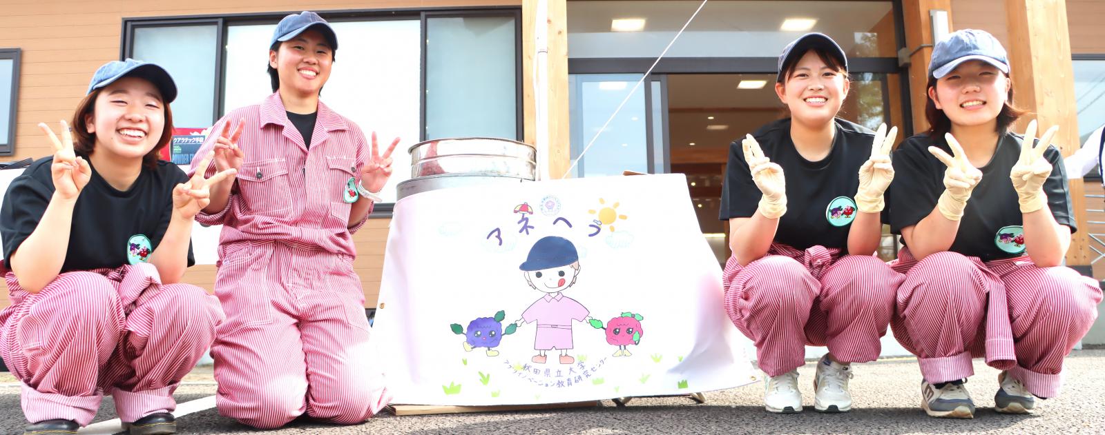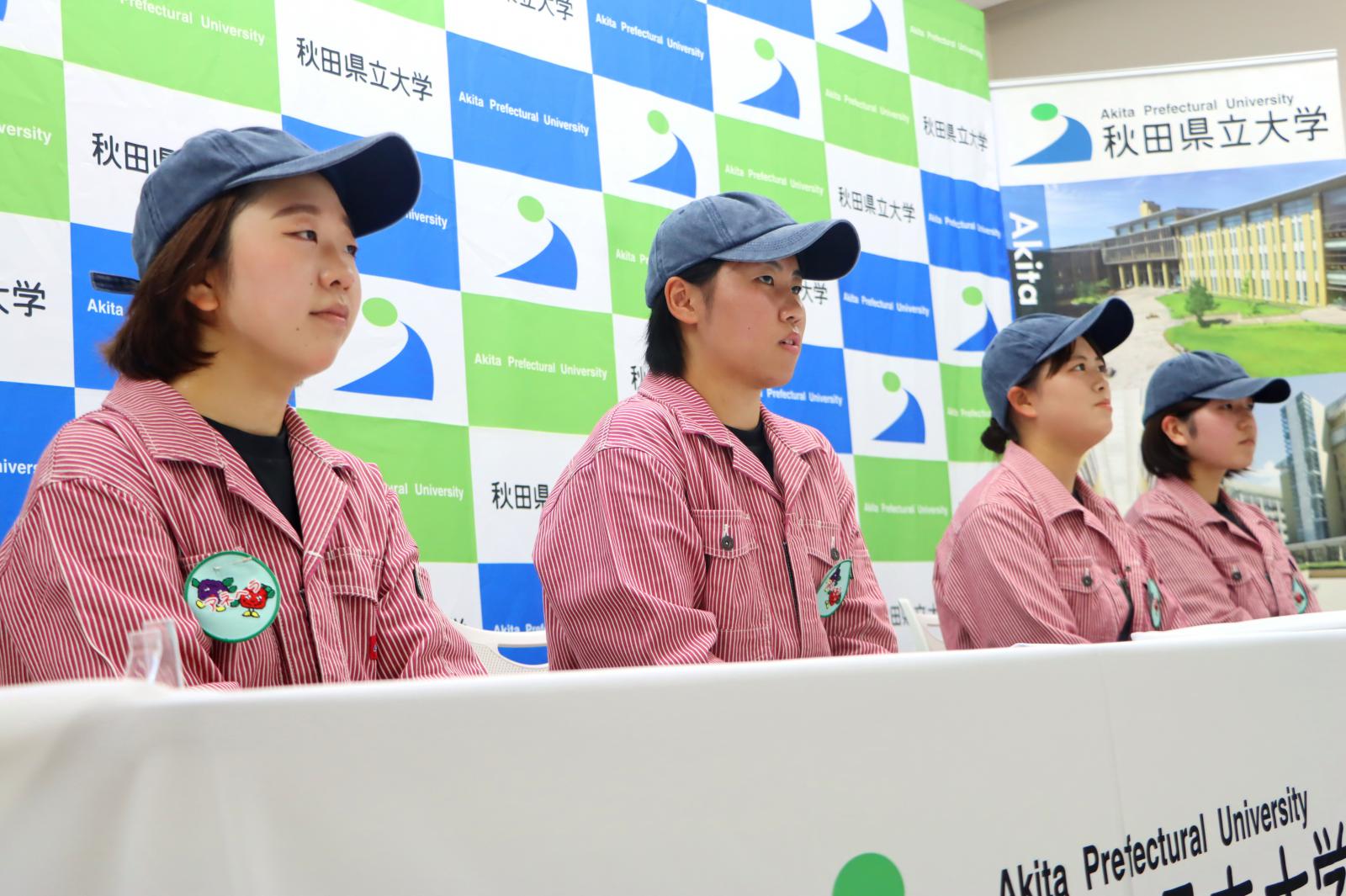 大潟村/大潟キャンパスの学生寮に住むメンバー4人は、春夏にかけて「菜の花ロード」が観光地化し多くの人で賑わう一方、村内での立ち寄る場所が道の駅に留まり、いわば通過する観光地となっている点を課題として捉え、村外から人を呼び込み地域を盛り上げることを目指し、新メニュー開発に挑戦しました。